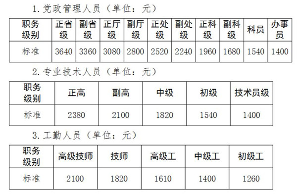 4.离休无职务人员按每人1960元标准计发,在职无职务人员均按每人980元标准计发补贴。