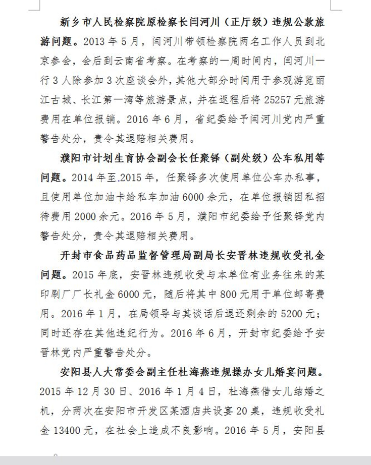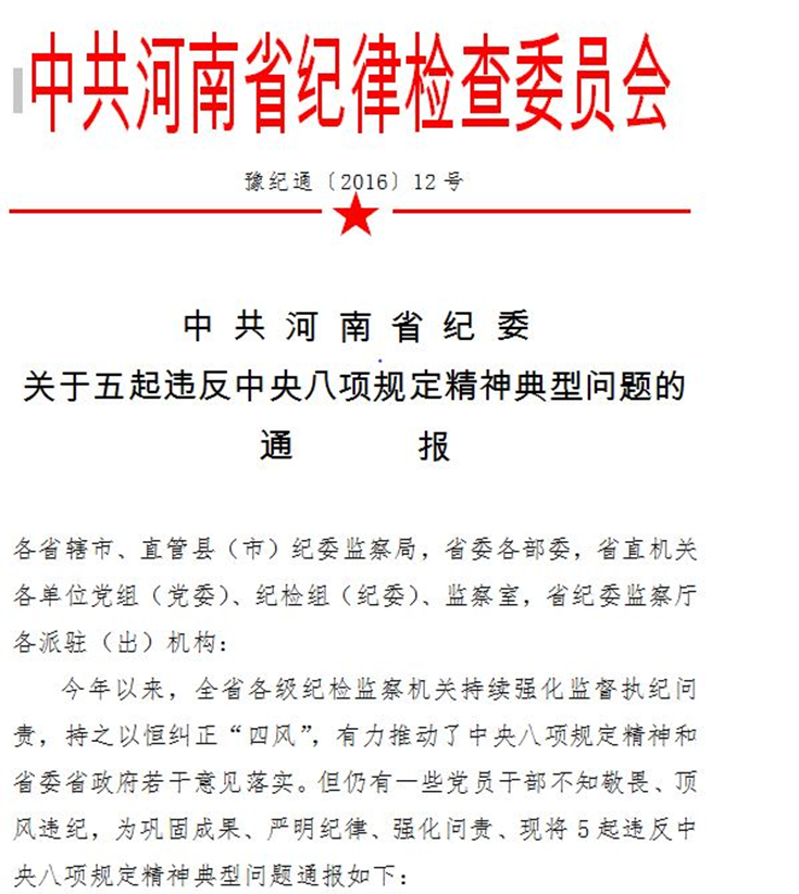 附件:中共河南省纪委关于五起违反中央八项规定精神典型问题的通报