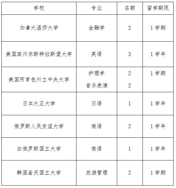 3、研修方式:赴国外高校进行一学期或一个学年的课程研修学习,返校后根据学校有关规定转换学分。