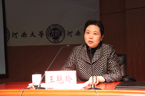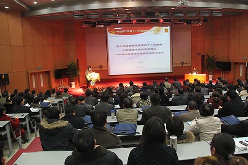 为深入学习、深刻领会党的十八大精神,推动兴起学习宣传贯彻十八大精神的热潮。2012年12月10日下午,省委宣讲团成员、党的十八大代表、省委高校工委书记、省教育厅厅长王艳玲在我校金明校区计算机大楼报告厅,作了题为《深入学习贯彻落实党的十八大精神,全面推进中原经济区建设为加快中原崛起河南振兴而努力奋斗》的宣讲报告。在校全体校领导、全体中层干部、省高校第30期中青年干部培训班和省高校学习贯彻党的十八大精神示范性培训班学员及部分师生代表听取了报告。报告会由校党委书记关爱和主持。