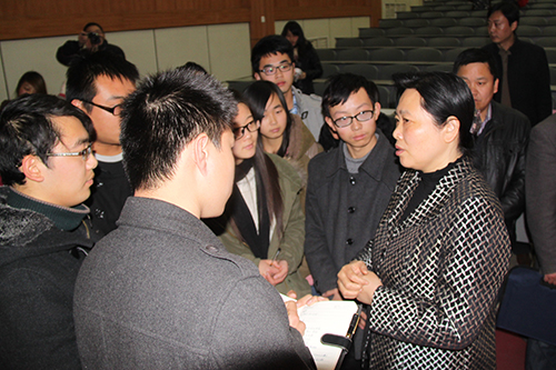 王艳玲还就如何学习贯彻好十八大精神、如何加强高校科技创新、青年大学生的使命责任等问题与学生代表们亲切交流。