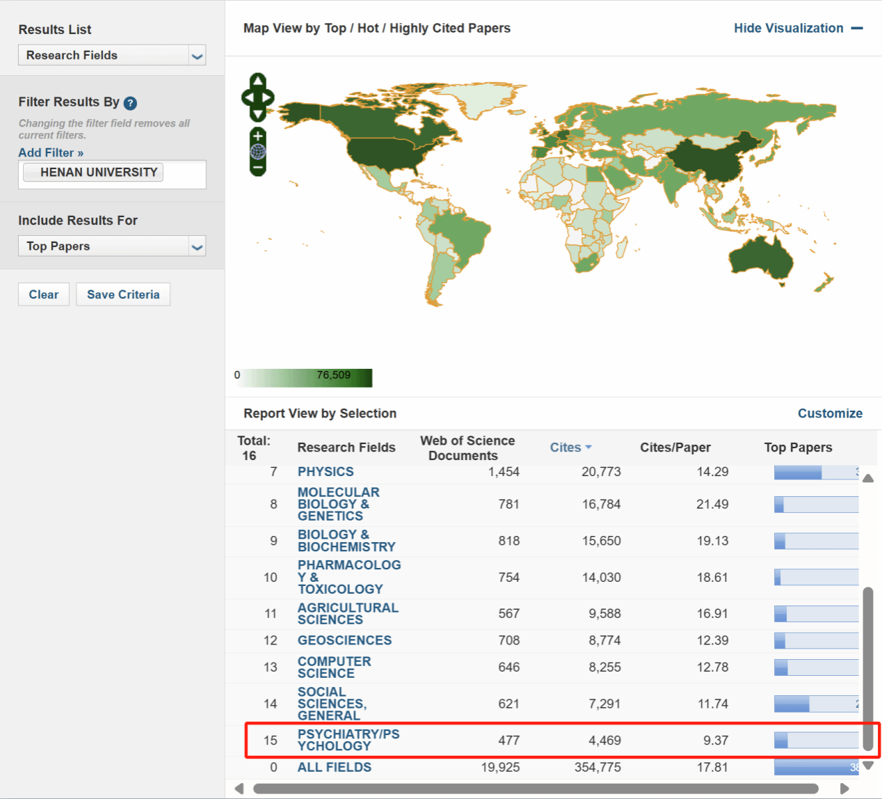 根据科睿唯安ESI数据库(Essential Science Indicators,基本科学指标数据库)7月10日更新数据显示,我校精神病学与心理学(Psychiatry & Psychology)首次进入全球排名前1%,该领域共有1130所研究机构进入世界前1%,我校排名第1101位,共发表论文477篇,其中高被引论文9篇,总被引频次4469次,篇均被引次数9.37次。精神病学与心理学进入ESI前1%,标志着该学科建设取得里程碑式的突破。