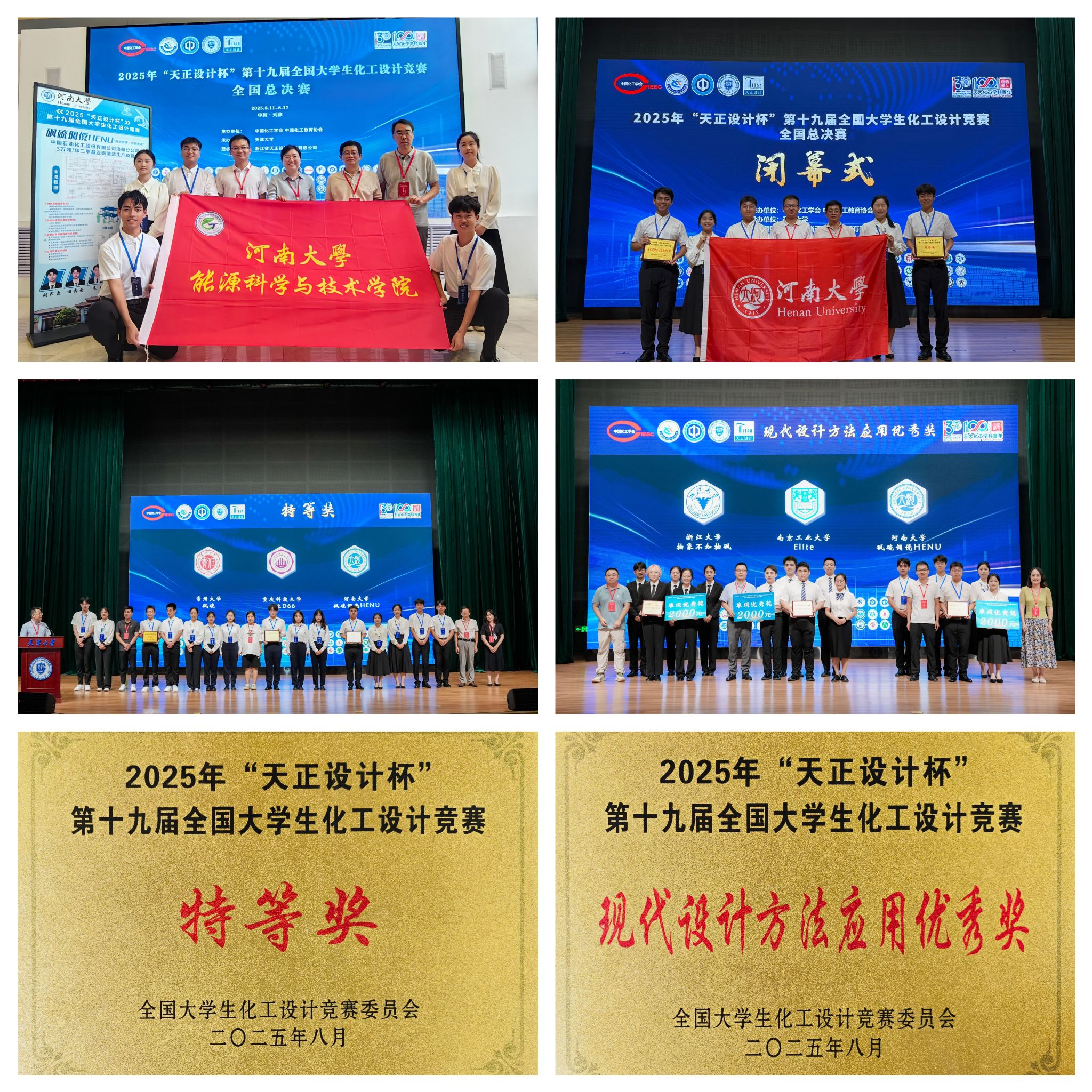 由中国化工学会、中国化工教育协会主办的2025年“天正设计杯”第十九届全国大学生化工设计竞赛全国总决赛,于8月11日至17日在天津大学举办。我校由能源科学与技术学院、化学与分子科学学院刘家豪、田鑫念、袁艺、邓金玉、贺怡馨五名学生组成的“砜硫倜傥HENU”团队在比赛中脱颖而出,经过总决赛两轮比赛,最终荣获全国特等奖和现代设计方法应用优秀奖。这是我校在本项竞赛中取得的第一个特等奖和第二个专项优秀奖。