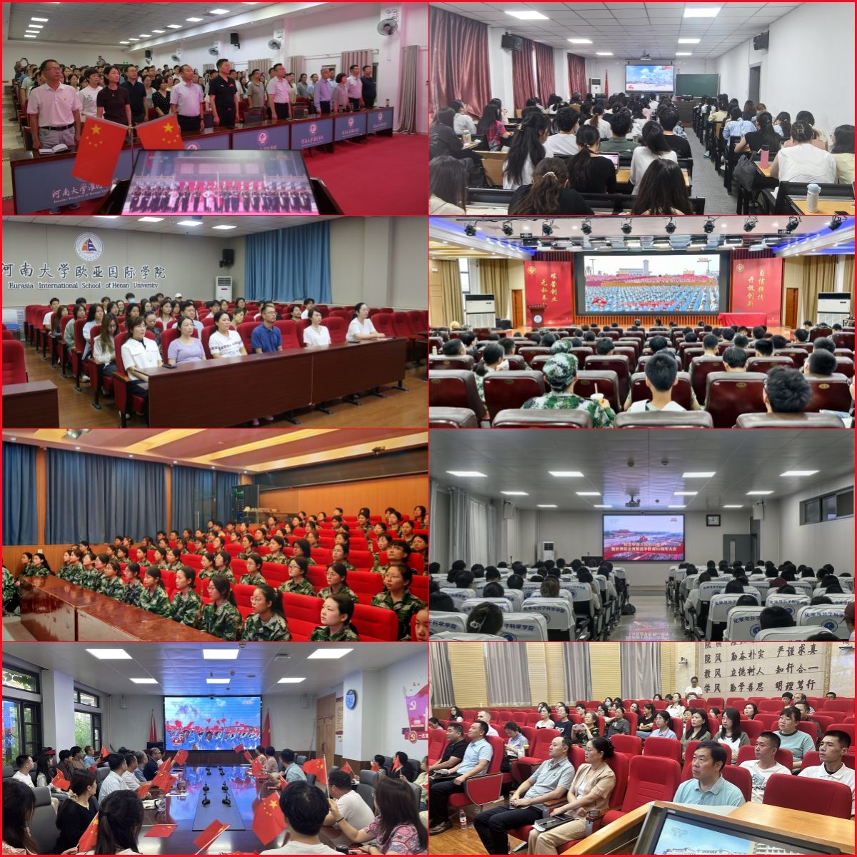 副校长白莹表示,习近平总书记的重要讲话和威武雄壮的阅兵盛典,有力彰显了80年来中国人民在中国共产党的领导下取得的举世瞩目伟大成就,让我们深受鼓舞、倍感自豪。百年河大历史,是一部爱国报国、追求进步的历史。在日寇入侵、山河破碎的危难时期,河大师生坚守教育报国初心,坚持敌前抗战办学,赓续文化命脉。新时代新征程,我们要牢记领袖嘱托,坚决落实立德树人根本任务,培养具有家国情怀、责任担当和创新精神的社会主义建设者和接班人。要主动对接国家重大战略和区域经济社会发展需求,加强基础研究和前沿技术攻关,为社会主义现代化建设提供强有力的河大支撑。