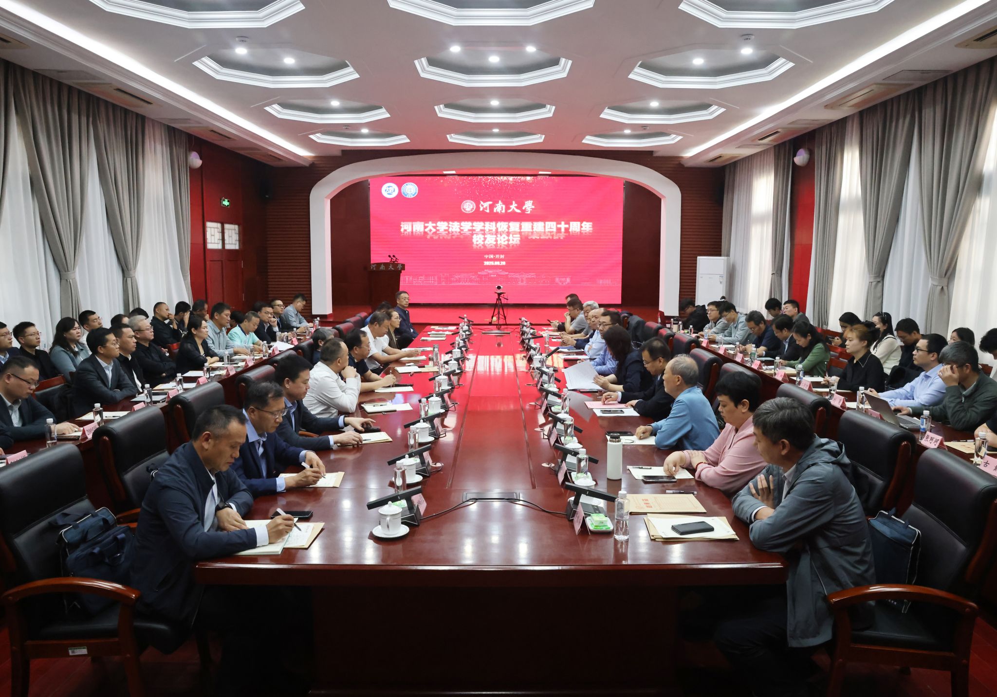 法脉赓续四十载,法治薪火向未来。9月20日上午,河南大学法学学科恢复重建四十周年校友论坛在明伦校区小礼堂举行。副校长乔梁,校友工作办公室主任肖艳,恢复重建以来历届辅导员、校友代表,法学院班子成员和学生代表参加论坛。论坛由法学院党委副书记刘炯主持。