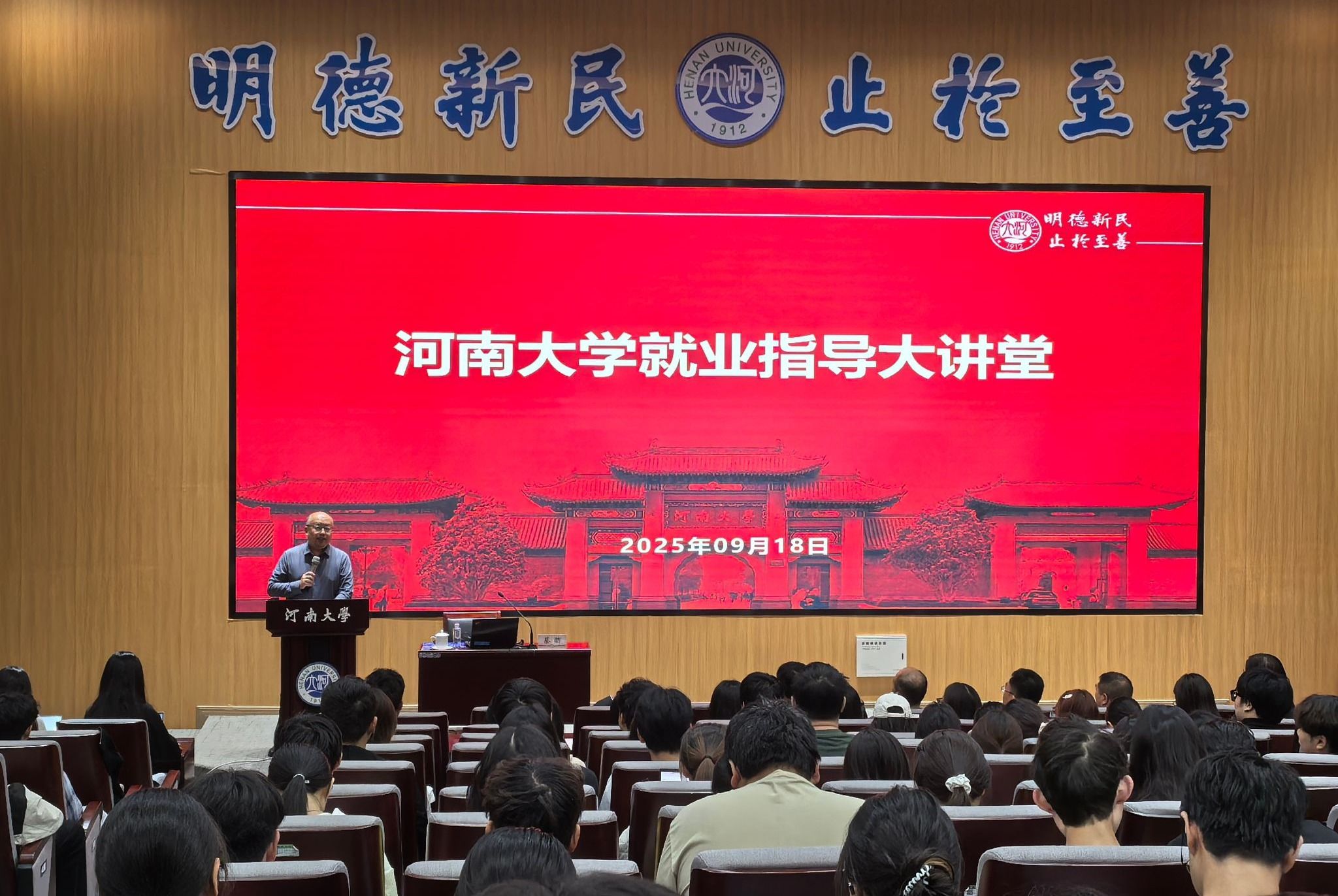 9月18日下午,“河南大学就业指导大讲堂”在郑州校区九章学堂一楼报告厅举行。十三届全国人大常委会委员、农业与农村委员会副主任委员,中国社会科学院原副院长、学部委员,中国社会科学院郑州市人民政府郑州研究院院长蔡昉受邀,为师生们作了题为《做好三篇大文章应对AI就业冲击》专题报告。中国社会科学院人口与劳动经济研究所就业与技术进步研究室副主任贾朋、郑州研究院执行院长冯钺及特邀专家孙华等参加。河南大学副校长薛波出席活动,300余名师生现场聆听。