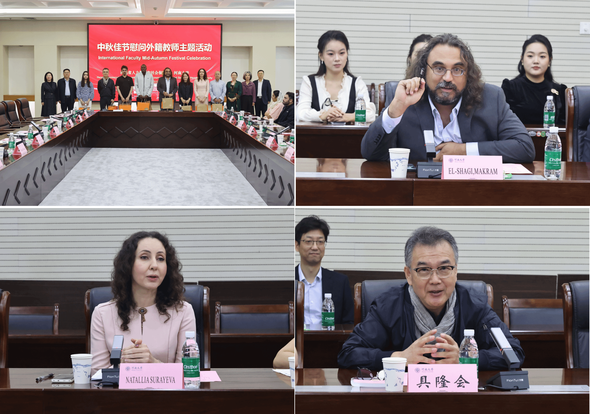 在外籍教师代表发言环节,来自德国的Makram El-Shagi(马克拉姆)、白俄罗斯的Natallia Surayeva(李凯书)以及韩国的Yunghoi Koo(具隆会)三位老师分享了在河大工作与生活的真切感受,表达了对学校的由衷感谢与对中华文化的深切热爱。随后,与会领导共同向外籍教师赠送了精心准备的中秋慰问礼品并合影留念,现场气氛温馨融洽。