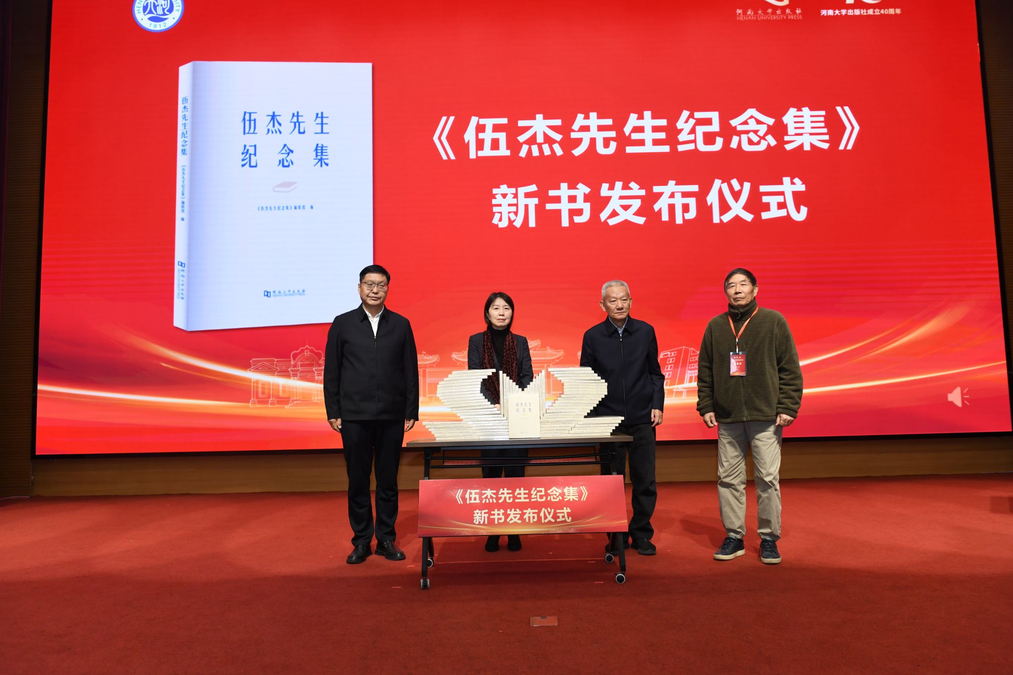 邬书林、平萍、杨萌芽、马小泉为《伍杰先生纪念集》揭幕