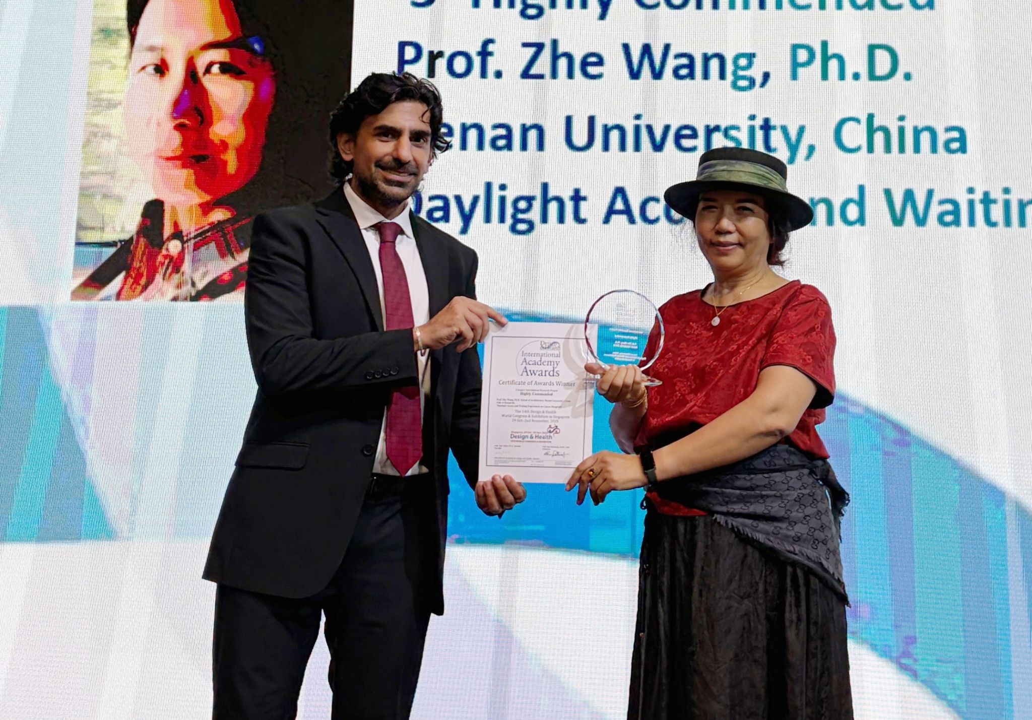 国际健康设计科学院主席兼创始人、瑞典皇家医学院教授 Alan Dilani 博士在颁奖典礼上指出:“王哲教授的研究不仅深化了我们对‘健康生成设计’理念的理解,更以科学实证的方式展示了建筑设计在促进人类健康与社会福祉中的积极作用。”