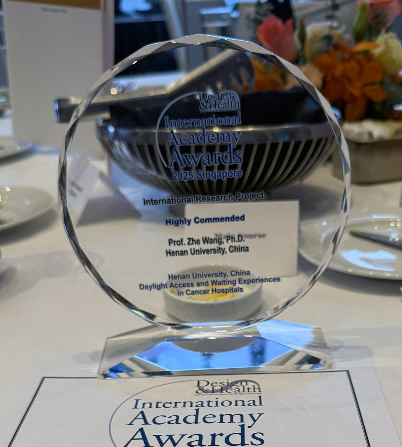 王哲教授现为河南省特聘教授,自2013年回国加入河南大学以来,长期致力于健康建筑与环境设计研究。她现任国际环境设计研究学会(EDRA)2023–2025年度国际杰出场地奖(Great Places Awards)评审主席,是EDRA九人理事会成员及EDRA CORE国际研究评审体系创建人,同时担任15种SSCI国际学术期刊的特邀审稿人,在国际学术界具有广泛影响力。此次获奖不仅体现了王哲教授在健康建筑与环境设计领域的杰出学术贡献,更展示了学校在推动跨学科研究与全球学术合作方面的持续努力。该成果的国际认可,将进一步提升我校在“设计与健康”交叉研究领域的国际声誉,助力学校“双一流”建设和国际化发展战略的深入实施。