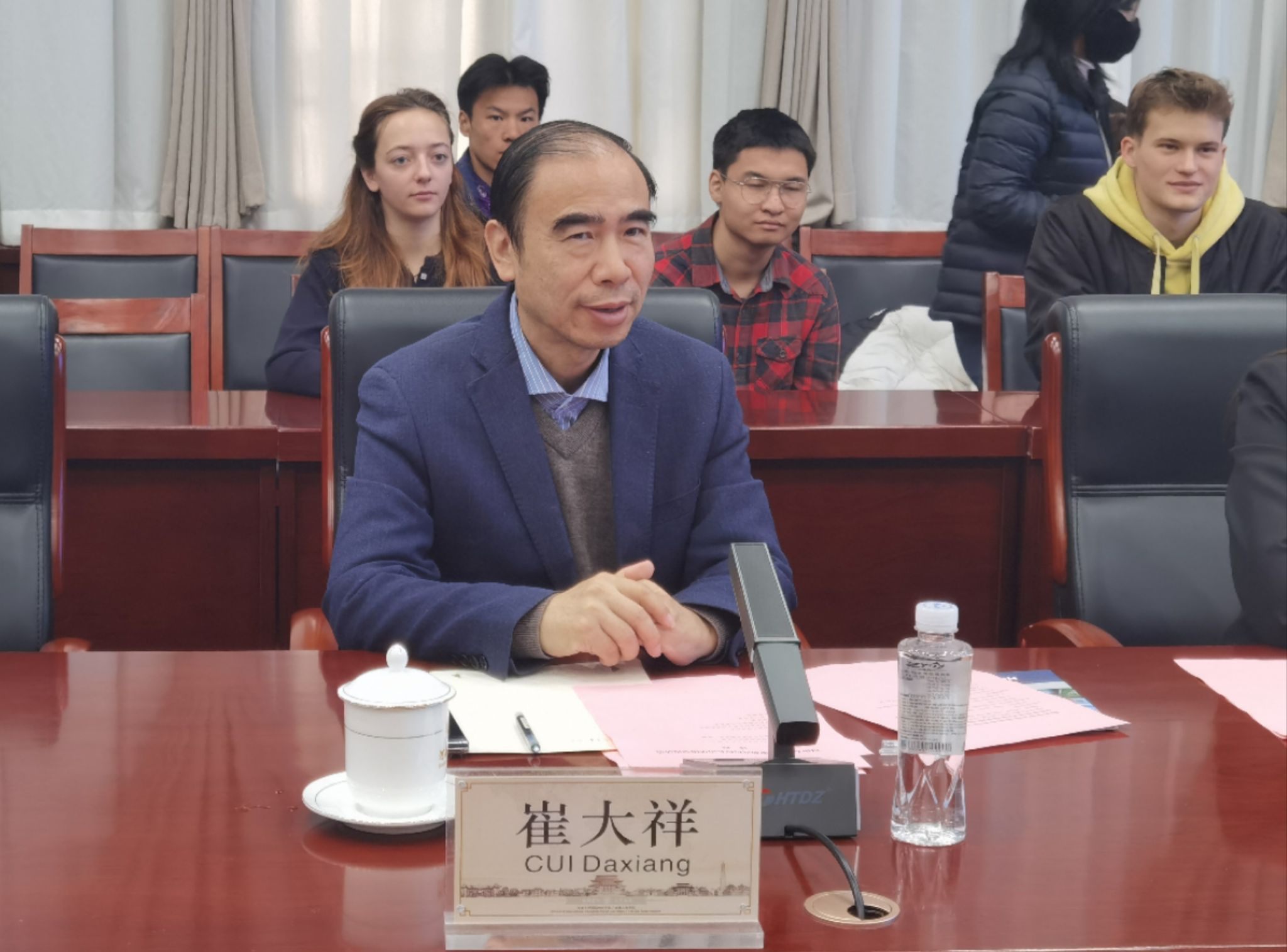 在观看河南大学宣传片《大学之道》后,崔大祥致欢迎辞。他首先代表学校向俄罗斯高校校长访华团一行的到来表示热烈欢迎,并详细介绍了河南大学在人才培养、科学研究、国际合作等方面的发展情况。崔大祥指出,中俄两国教育交流历史悠久、基础深厚,河南大学高度重视与俄罗斯高校的合作,希望以此次交流活动为契机,进一步深化双方在产教融合、专业共建、涉外办学、师生互访等方面的合作,共同培养能适应全球化发展需求、能服务两国经济社会发展的高端人才,为中俄教育合作注入新动能。