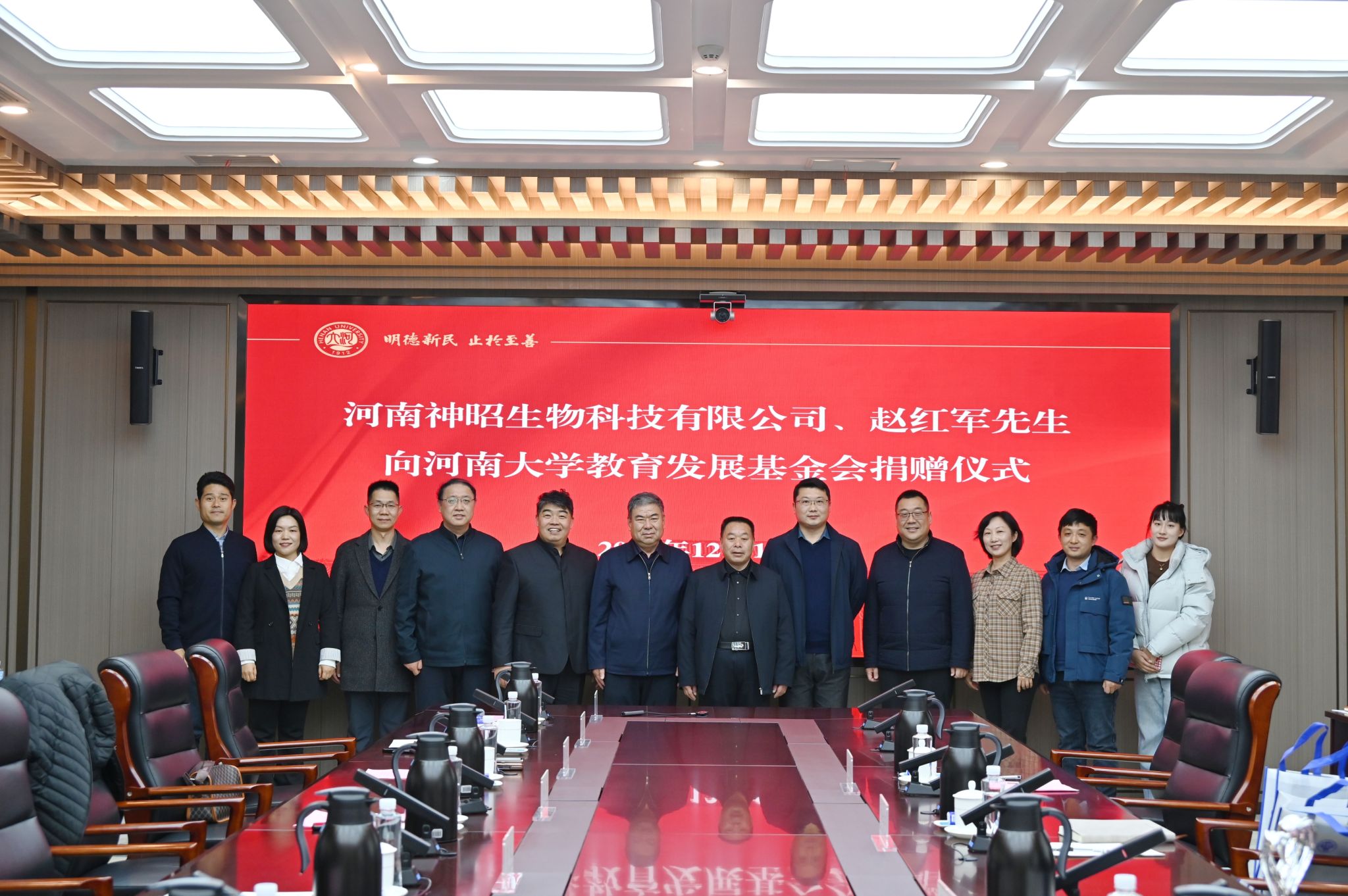 12月12日下午,河南神昭生物科技有限公司、赵红军先生(个人)捐赠仪式在郑州龙子湖校区友兰学堂中楼305会议室举行。河南神昭生物科技有限公司副总经理祖士江、采购总监谷庆民,个人捐赠代表赵红军,校党委书记季波,副校长、校友与教育发展基金工作部部长乔梁,教育发展基金会秘书长刘婷及研究生院、生命科学学院相关人员参加活动。仪式由生命科学学院党委书记梁建忠主持。