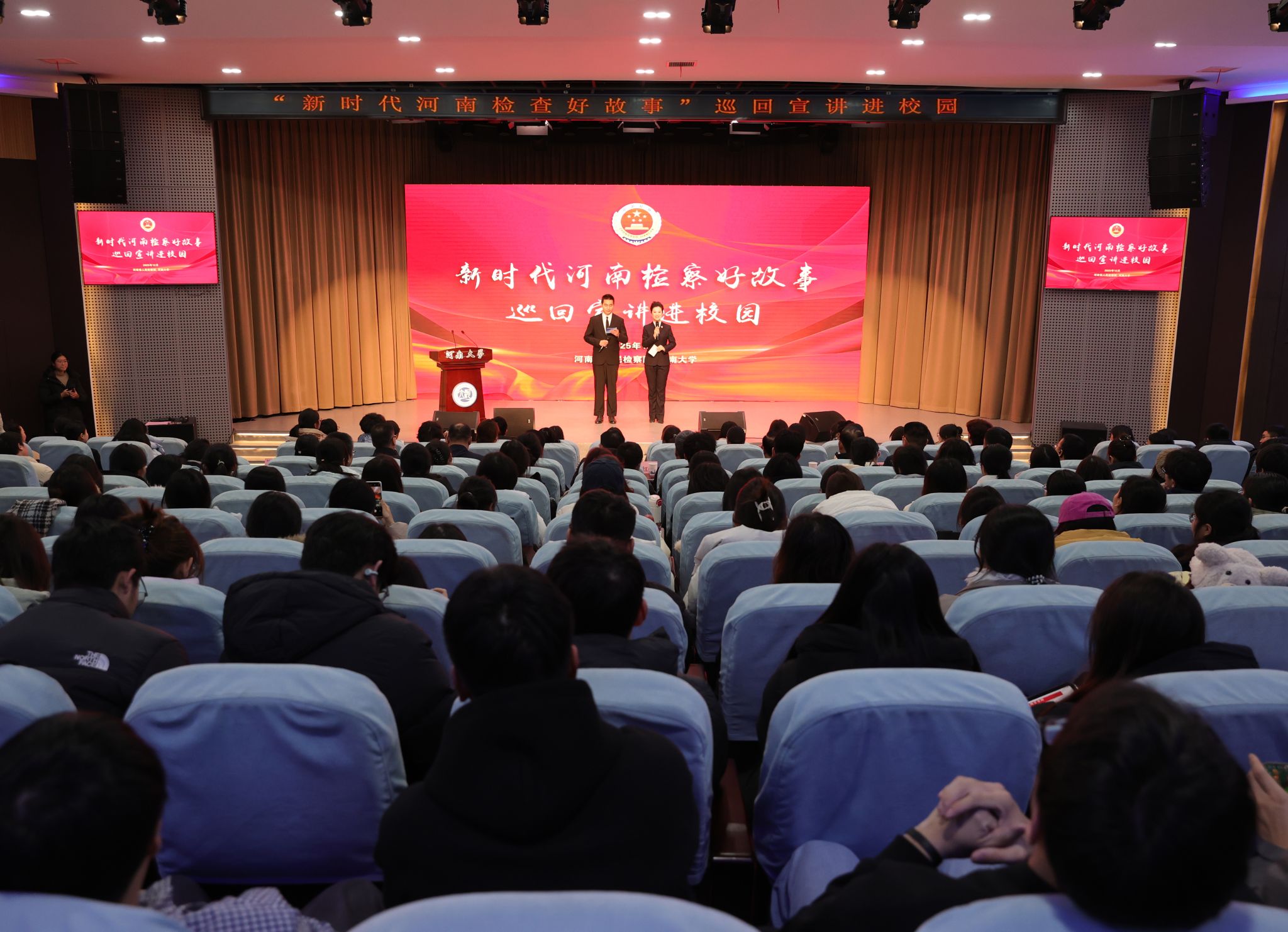 12月24日晚,“新时代河南检察好故事”巡回宣讲活动于河南大学我校明伦校区科技馆二楼报告厅举行。河南省人民检察院检委会专职委员李红伟,河南省人民检察院政治部宣传处处长刘立新,副处长李达、陈朝东,河南大学党委副书记李平,党委宣传部部长姬志闯出席活动,法学院班子成员及师生代表近300人共聚一堂,聆听法治前沿的动人篇章。
