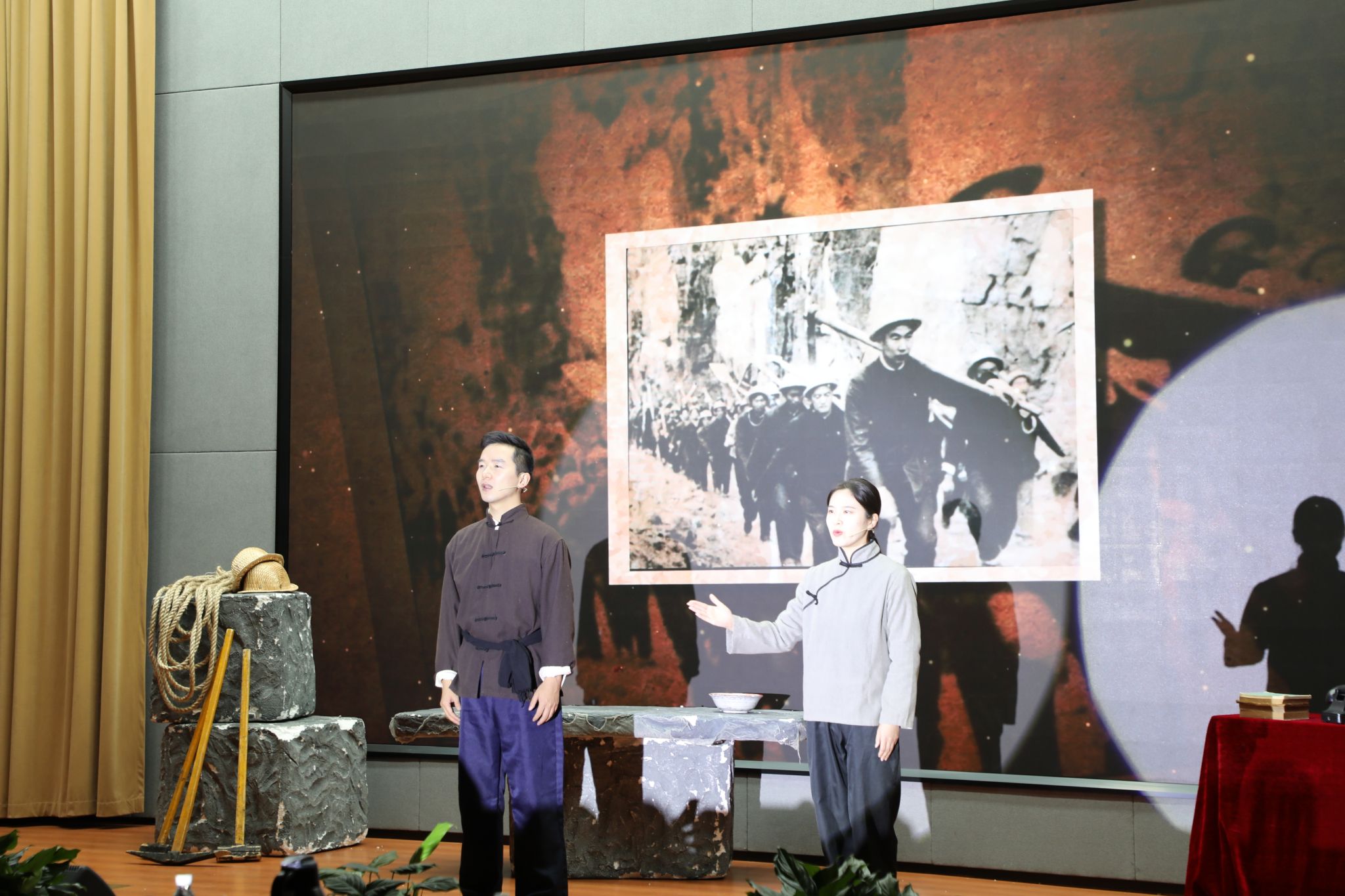在全场见证下,杨萌芽与鲁红杰代表双方签署战略合作框架协议,并为河南红旗渠干部学院——河南大学大学生实习实践基地揭牌举行揭牌仪式。情景党课《红旗渠精神永在》共有“红旗猎猎·挺进太行”“铁骨铮铮·鏖战太行”“渠水长流·精神永在”三个篇章,融合情景模拟、诗歌朗诵、时空对话、红歌唱响等艺术形式,再现了林县人民在太行山悬崖绝壁上开凿“人工天河”的艰苦历程。宣讲团以沉浸式小剧场演绎再现了红旗渠建设的壮阔场景,让师生深刻感悟“自力更生、艰苦创业、团结协作、无私奉献”的精神内核。