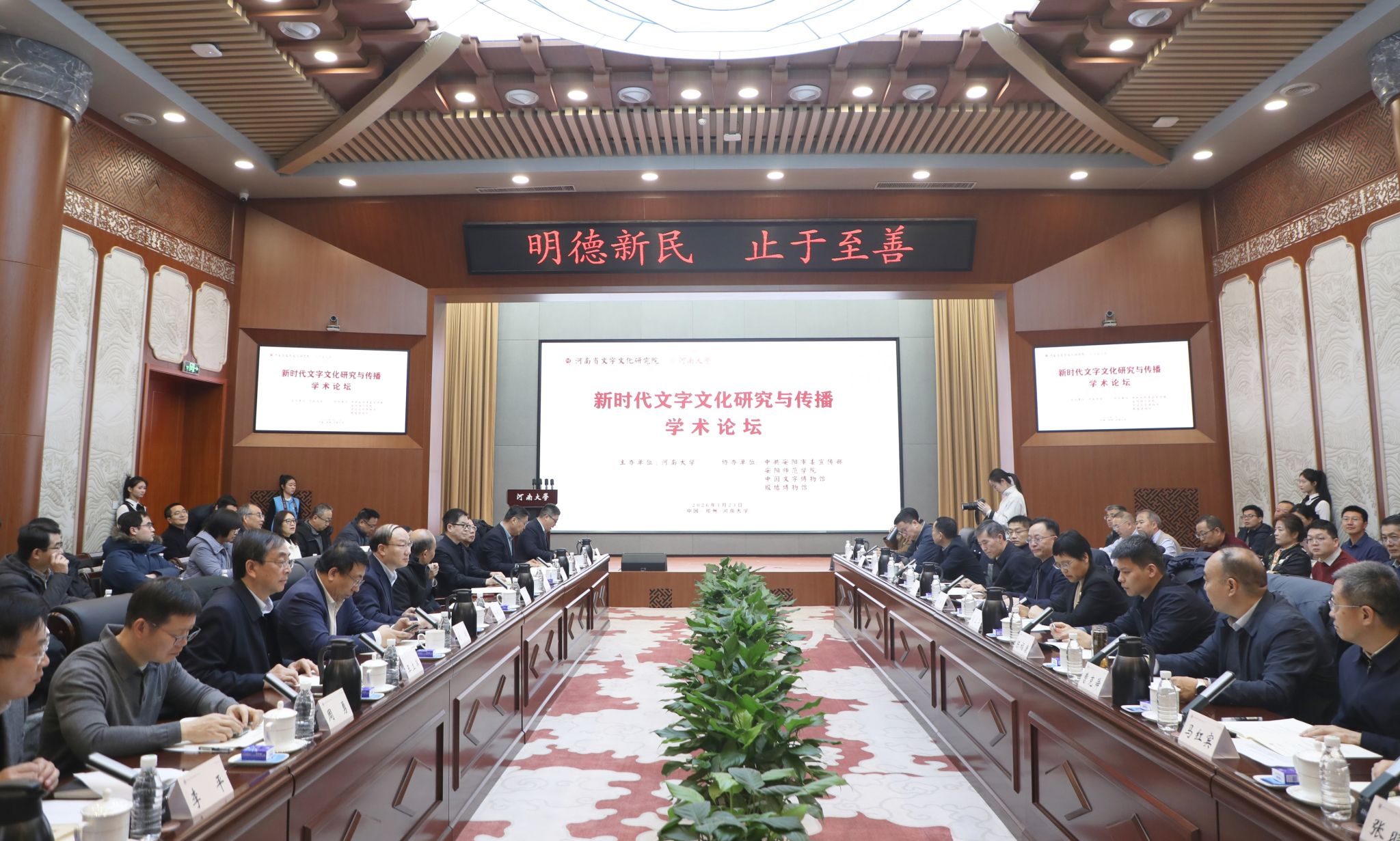 1月23日,由河南大学主办、安阳市委宣传部、安阳师范学院、中国文字博物馆、殷墟博物馆协办的“新时代文字文化研究与传播”学术论坛在河南大学郑州龙子湖校区举行。河南省社科联主席李庚香,中共河南省委宣传部二级巡视员葛卫华,河南省文化和旅游厅党组成员、副厅长翟传鸣,教育部语言文字信息管理司领导陈福康,哈尔滨工业大学党委常委、副校长刘挺,河南省教育厅二级巡视员曹克舜,河南省卫生健康委员会二级巡视员熊文兴,安阳市副市长马红宾,安阳师范学院副校长柏䶮,河南省农业农村厅网宣处处长张道亮,河南文旅投资集团总经理助理、战略规划投资总监、省文化产业公司董事长张晓鹏等领导及专家学者,河南大学校长、中国科学院院士张锁江,校党委副书记李平、杨萌芽,学术副校长海霞及我校相关单位负责同志、师生代表出席论坛开幕式。开幕式由副校长张向东主持。