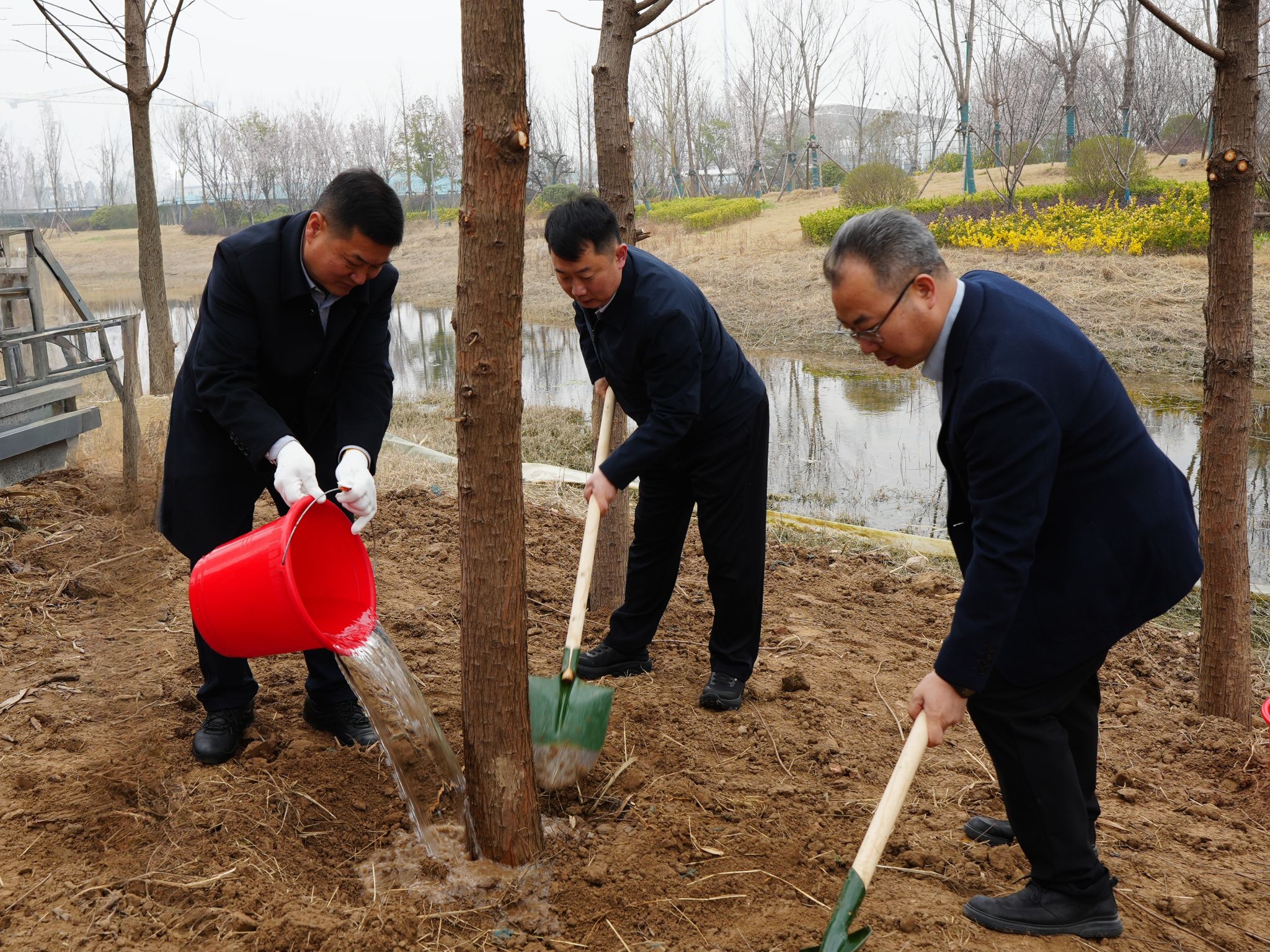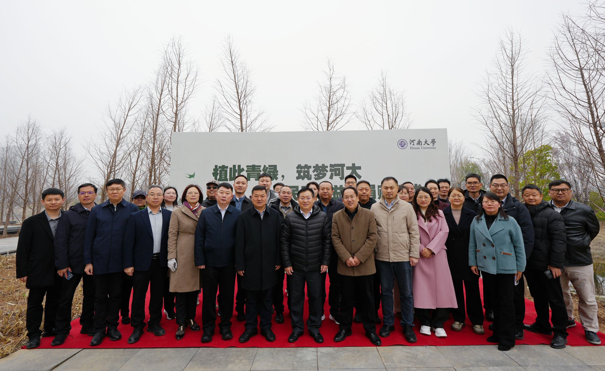 仪式结束后,与会嘉宾为刚刚栽种下的水杉培土、浇水,随后共同参观了河南大学展览馆。
