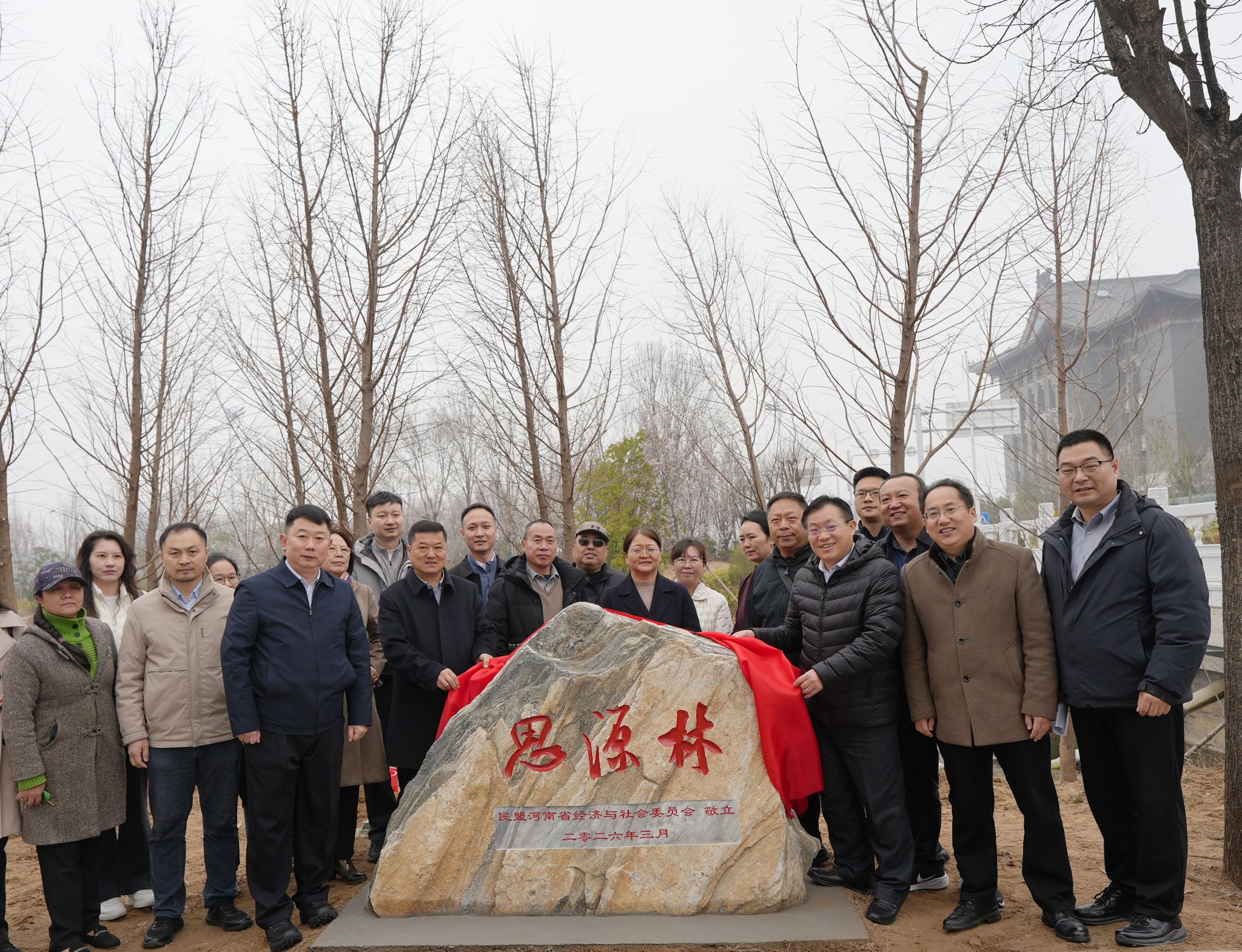 3月17日上午,植此青绿,筑梦河大——民盟河南省经济与社会委员会、民盟河南省委非公经济委员会捐赠“思源林”仪式在河南大学郑州龙子湖校区举行。民盟河南省委秘书长黄云火、民盟河南省委经济科技处处长冯浩志、民盟河南省经济与社会委员会主委、民盟河南省委非公经济委员会主任张磊、我校党委副书记李平,党委统战部、总务处(后勤集团总公司)、龙子湖校区综合管理办公室、校友工作办公室、教育发展基金会办公室、民盟河南大学委员会等校方代表,与民盟河南省经济与社会委员会、非公经济委员会的委员、盟员代表一同参加仪式。仪式由校党委统战部副部长黄鑫主持。