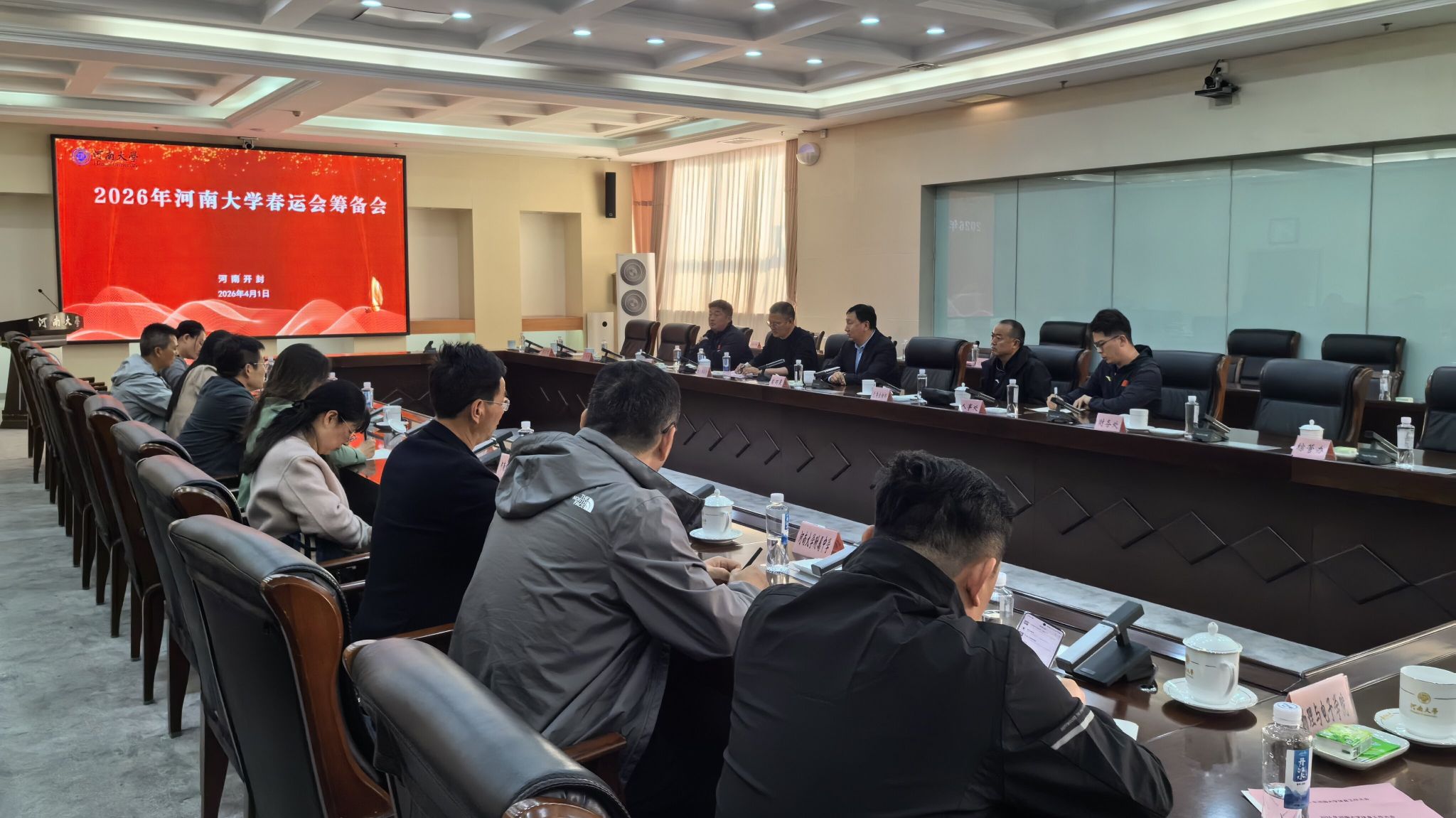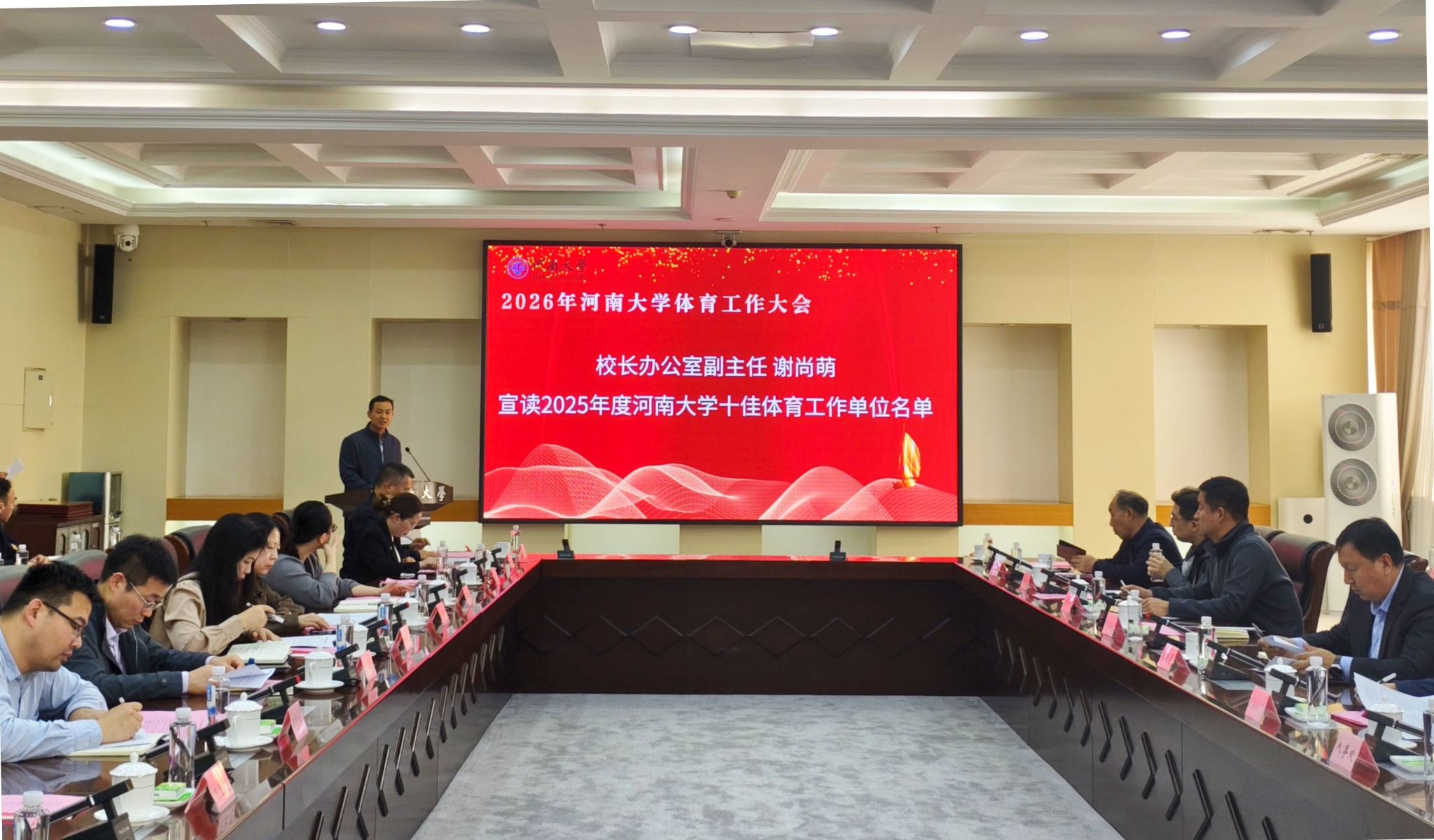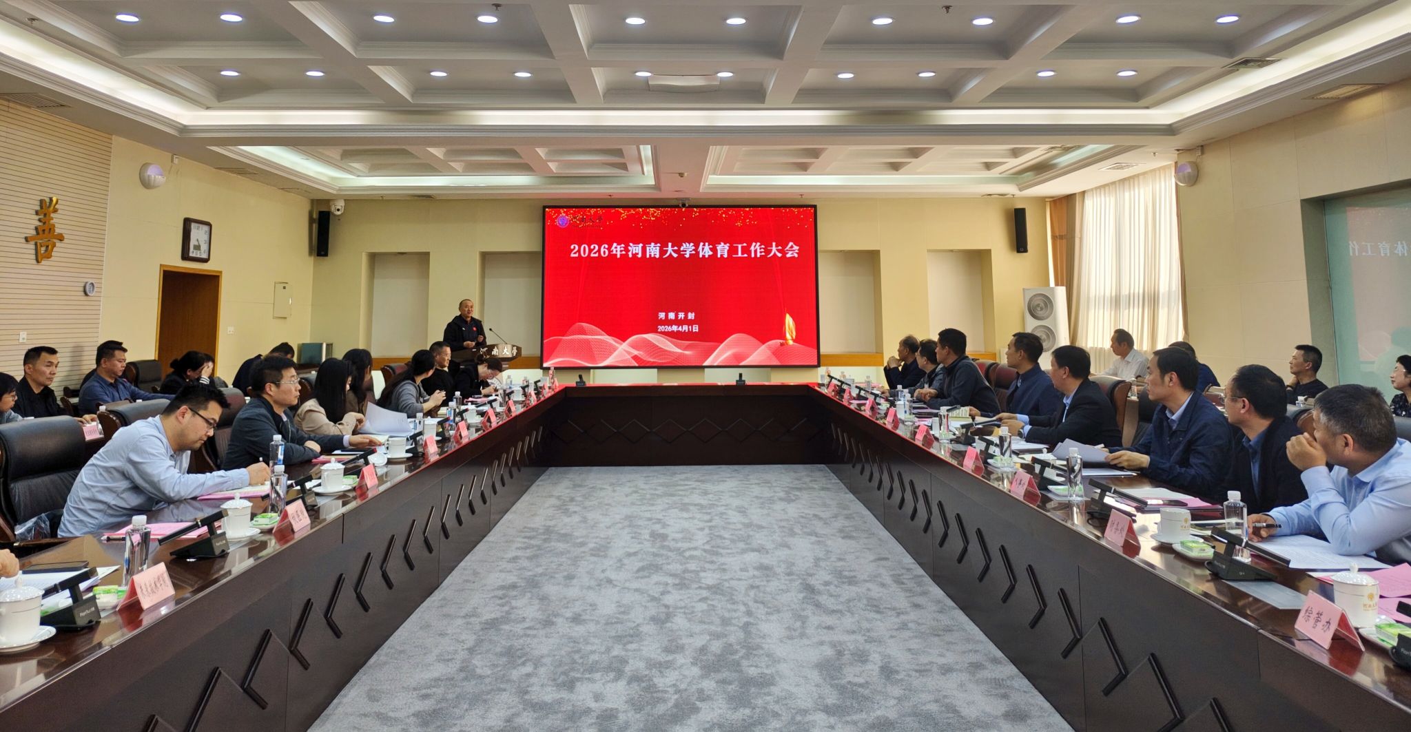 4月1日下午,河南大学2026年体育工作大会在金明校区图书馆三楼会议室举行。校体委主任、副校长苗雨晨出席会议并讲话,校相关部处负责人、各学院、附属学校负责人及春运会筹备组相关人员参加会议。会议由校体委副主任、体育学院党委书记段廷良主持。
