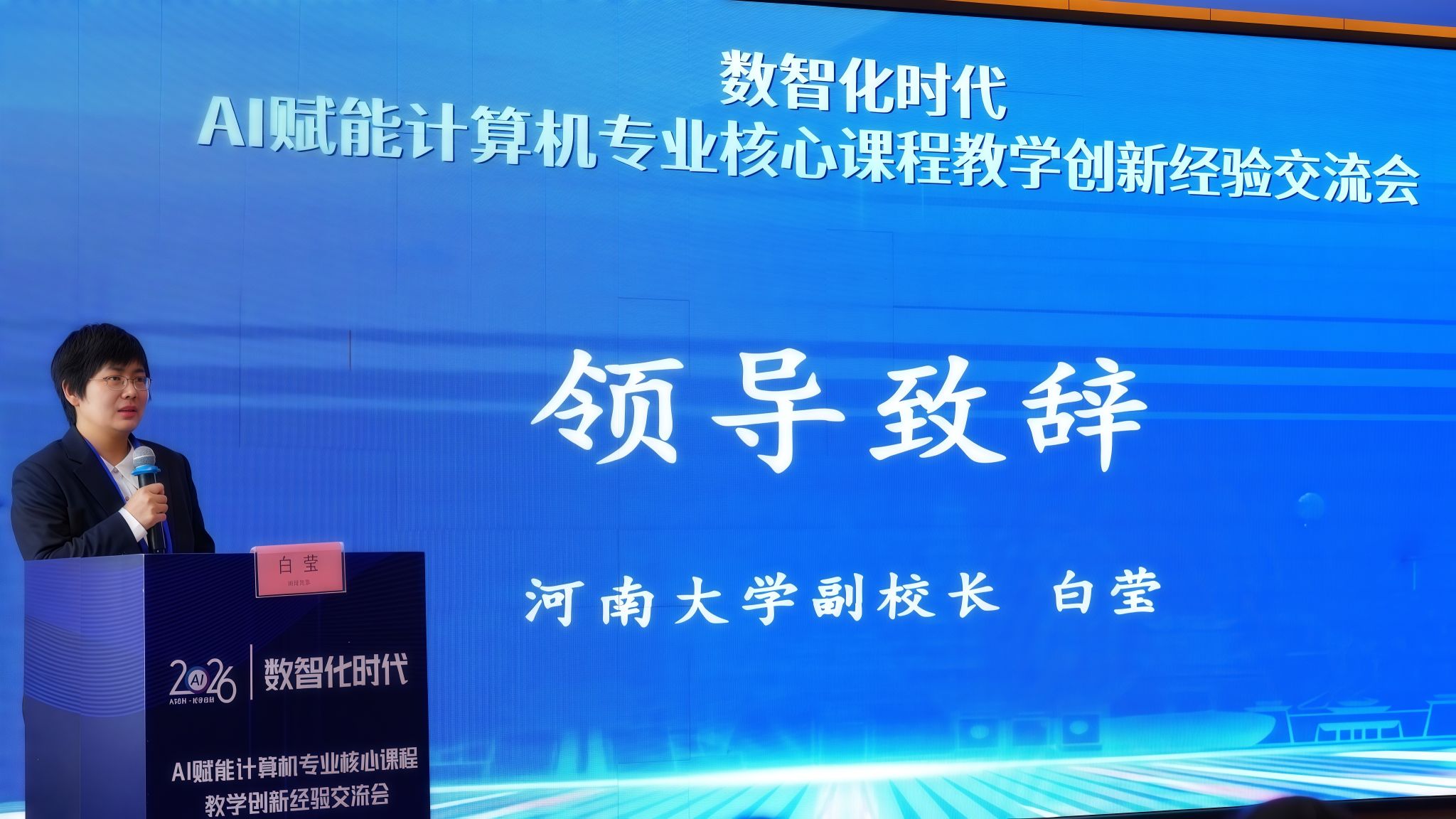 开幕式上,白莹指出,当前以人工智能为代表的新一轮科技革命正深刻重塑社会与产业格局,计算机类专业作为培养国家战略科技力量的关键载体,其教学创新直接关系到人才培养质量与国家竞争力。她介绍了河南大学在“双一流”建设背景下,计算机学科与专业的建设情况以及深化产教融合等方面的积极探索,强调将AI深度融入核心课程教学是教育理念与模式的系统性重塑。