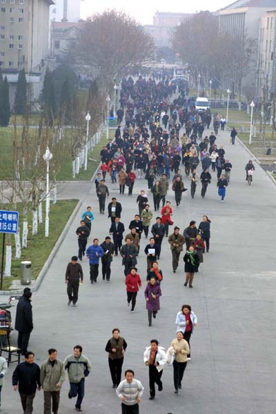 伴随着新年到来的脚步,全校3000多教职工在校工会和共体部的周密组织下,于12月31日下午进行了越野大赛。校党委副书记郑邦山、工会主席袁顺友为起跑执枪发令,校党委副书记赵豫林带头冲在前边,年青人奋勇争先,老教授锐气不减,体弱者跑跑走走,最终都坚持到了终点,连70多岁的党鸿辛院士也踊跃参加了比赛,并在工作人员的陪同下坚持到了终点。全民健身的热情融化了凛冽寒风,给深冬的校园带来了蓬勃的朝气和融融暖意。