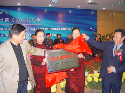 随后,副校长王发曾代表校党委宣读了《关于成立河南大学新闻中心的决定》的通知,党委书记张秉义、校长关爱和为新闻中心揭牌,与会代表及嘉宾纷纷表示祝贺。河南师范大学党委宣传部部长李勇同志、《大河报》副主编孟磊同志分别代表兄弟高校及新闻媒体发言,对我校新闻中心的成立表示祝贺。我校老校友、河南省委政法委副书记张国臣在庆典仪式上也发表了热情洋溢的讲话。