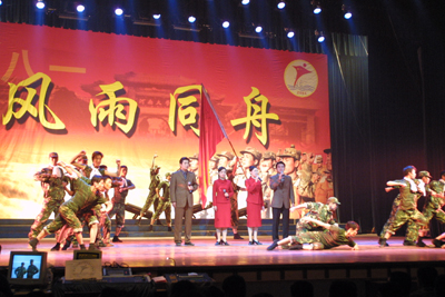 “风雨同舟”--开封市委市政府、河南大学慰问71622部队抗洪英雄文艺晚会7时整拉开帷幕。我校党委书记张秉义、副书记郑邦山,副校长王发曾百忙中亲赴许昌为演出师生加油,为抗洪勇士送去诚挚的祝福。