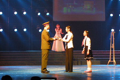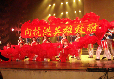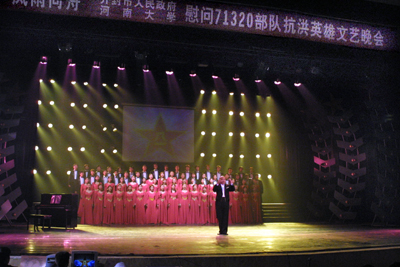 危难见真情,颂歌赞英雄。11月8日晚,由开封市人民政府、河南大学联合主办的“风雨同舟”慰问71320部队抗洪英雄大型文艺晚会在部队大礼堂举行。开封市委书记孙泉砀、市长刘长春,河南大学党委书记张秉义、副书记郑邦山、副校长王发曾、校工会主席袁顺友以及71320部队首长等党政军领导莅临晚会现场,与千余名官兵一道兴致勃勃地观看了演出。