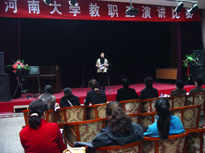 29位教职工参加了预赛,他们中有参加工作不久的青年教师,也有执教多年的副教授;有一般学历的职工,也有博士、硕士。他们或颂扬身边教师的高尚品德,或抒发自己作教师的深切感受;或激情昂扬,或侃侃而论,风格各异,各展所长,呈现出激烈的竞争之势,显示了我校青年教师奋发向上、才华横溢的亮丽风采。各参赛单位的党、政、工领导和同志们对大赛非常关心,有的亲自指导,有的到场助威,更增添了参赛选手们的信心和勇气。