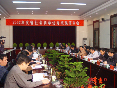 2003年9月26日下午3时,由河南省委宣传部和省社科联主办,我校党委宣传部和科研处承办的2002年度河南省社会科学优秀成果评审会在我校小礼堂拉开帷幕。来自河南省社会科学界的领导和专家会聚古朴典雅的中原名校,在金秋的收获季节共同盘点2002年度河南省社会科学方面的优秀成果。