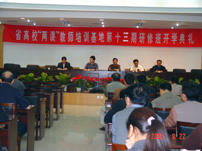 我校党委副书记郑邦山同志代表校党委对来自兄弟院校参加培训的“两课”教师表示热烈欢迎。他谈到了掀起学习和贯彻“三个代表”重要思想新高潮的重要性,希望大家通过10天的学习能够对“三个代表”重要思想有一个更加深刻的认识。郑邦山副书记还对我校近期的发展情况以及未来的规划做了介绍。