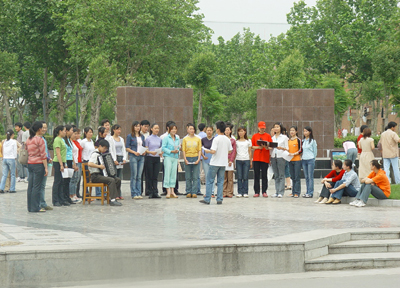 在河南大学,记者们无时无刻不在感受着河大浓厚的校园文化氛围,在特殊时期,河南大学广大团员青年良好的精神面貌赢得了他们的交口称赞。在文学院,由院团总支和校演讲学会联合组织的“众志成城,共抗非典”演讲朗诵会激情飞扬气势澎湃;艺术学院的学生不仅排唱了《我们众志成城》等歌曲,还在艺术广场举办了露天画展,作曲系的同学们还创作演出了抗击 “非典”歌曲《白衣天使》,这都给记者们留下了深刻的印象。