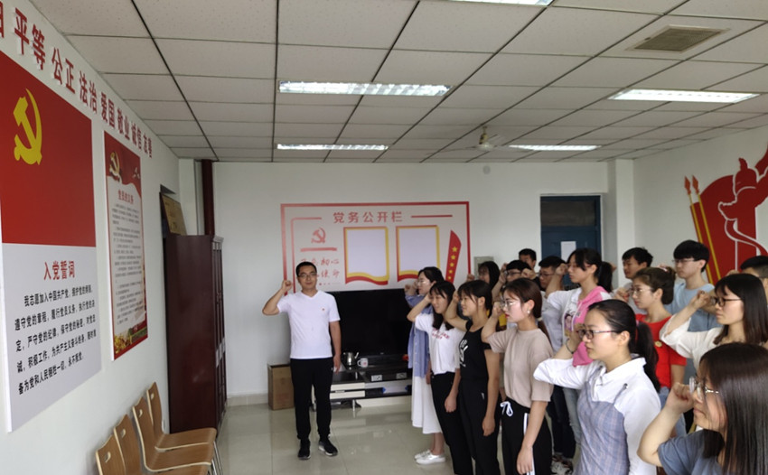 6月8日上午,在物理与电子学院A座309党员活动室,学院党委举行了2019年预备党员宣誓仪式。院党委副书记乔石豪出席仪式并领誓,支部书记、正式党员代表和51名预备党员与会。仪式由学院党办负责人、本科生第四党支部书记孔瑞婷主持。
