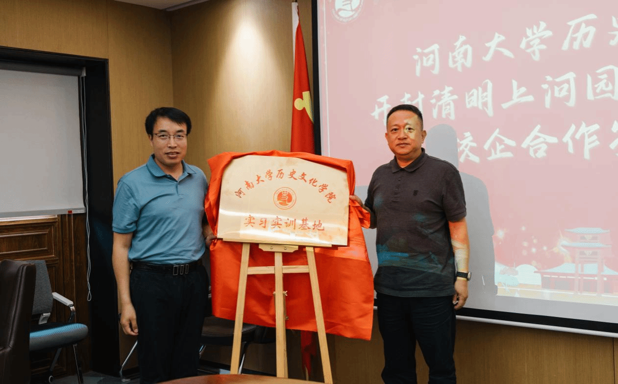 在与会嘉宾的见证下,陈升远与张增群代表双方签署战略合作协议。随后,祁琛云与张增群共同为“河南大学历史文化学院实习实训基地”揭牌,标志着双方合作进入实质性阶段。