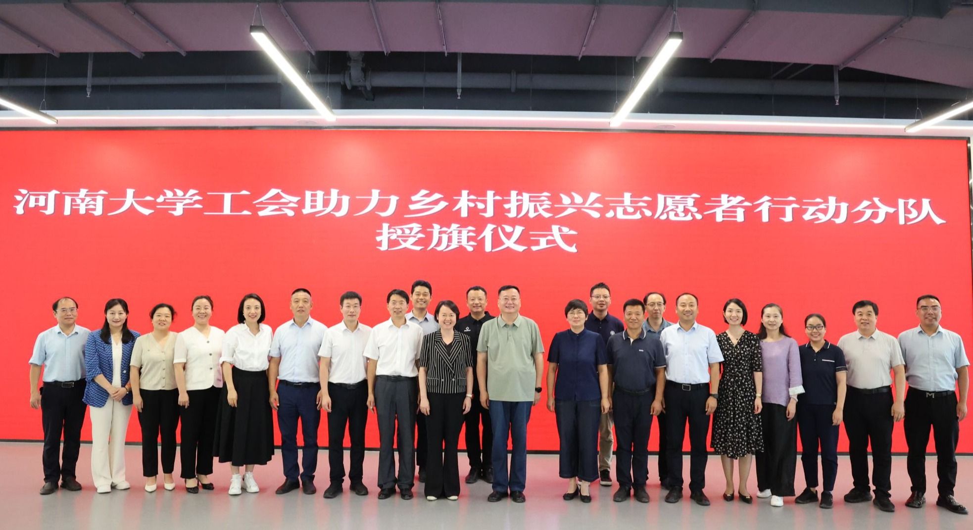 下午,徐飞主持河南大学示范性劳模和工匠人才乡村振兴研究创新工作室挂牌、河南大学工会助力乡村振兴志愿者行动分队授旗仪式。兰考县县委常委、副县长、国家乡村振兴(兰考)研究院副院长孟珊致辞,她对河南大学长期以来对兰考县的支持和帮助表示由衷感谢,并对各位专家的到来表示热烈欢迎。仪式上,校工会刘宇、徐飞、刘银华分别向助力乡村振兴志愿者行动分队队长乔家君、刘百陆、霍雷授旗。省总工会命名的张朝晖工作室领衔人张朝晖献上了寓意凝心聚力、奋勇争先的剪纸作品《八骏图》。
