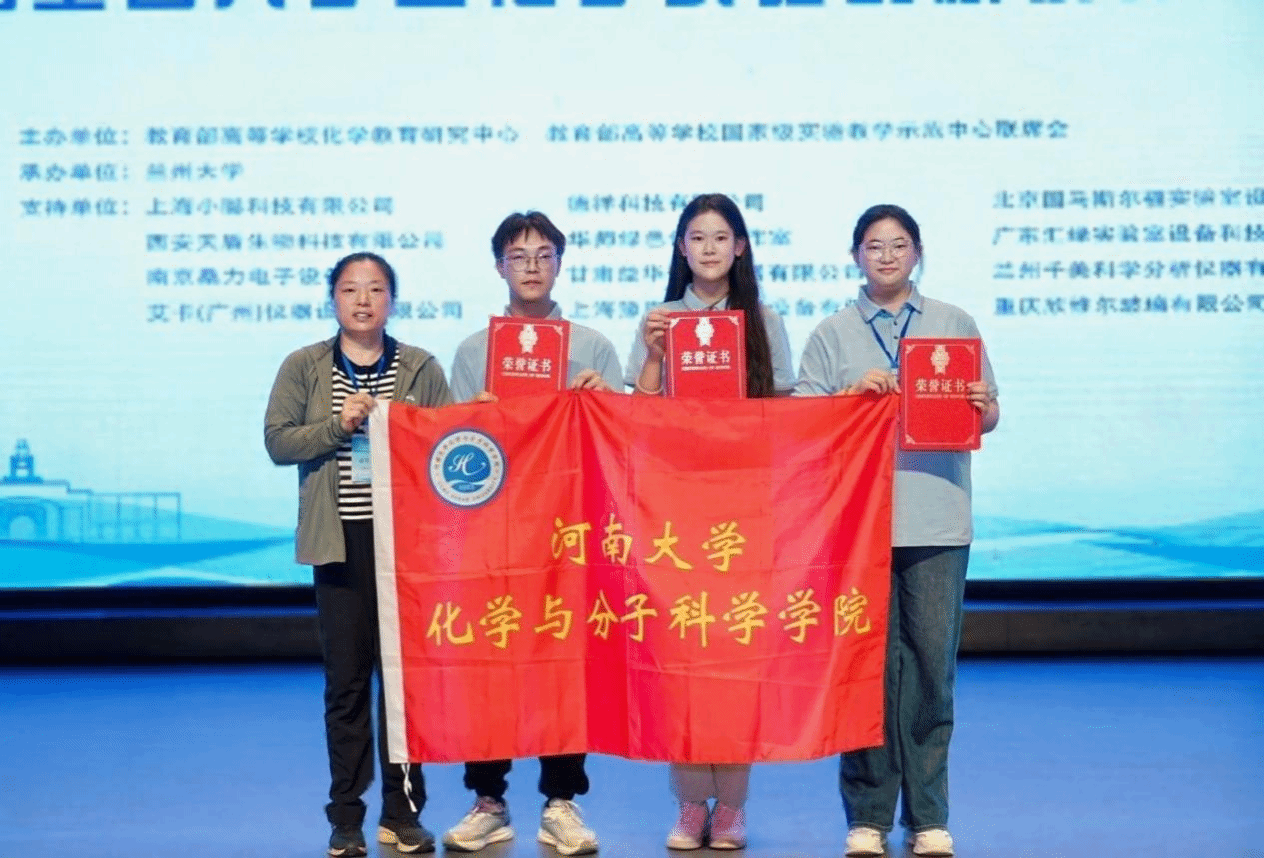 化学与分子科学学院学子金瑜、吕恩明、刘梦迪组成的河南大学科普队参加此次比赛。在翟翠萍、李杰老师的悉心指导下,精心打磨作品,完善论文、视频与答辩PPT。总决赛现场,选手们沉稳自信,凭借清晰的逻辑,出色的创新点,获得了评委老师的一致认可,生动诠释了河大学子追求卓越的科研态度。经过激烈角逐,团队荣获国家二等奖,这不仅是对团队努力的肯定,更是学校长期重视实践教学、培养创新人才的有力见证。