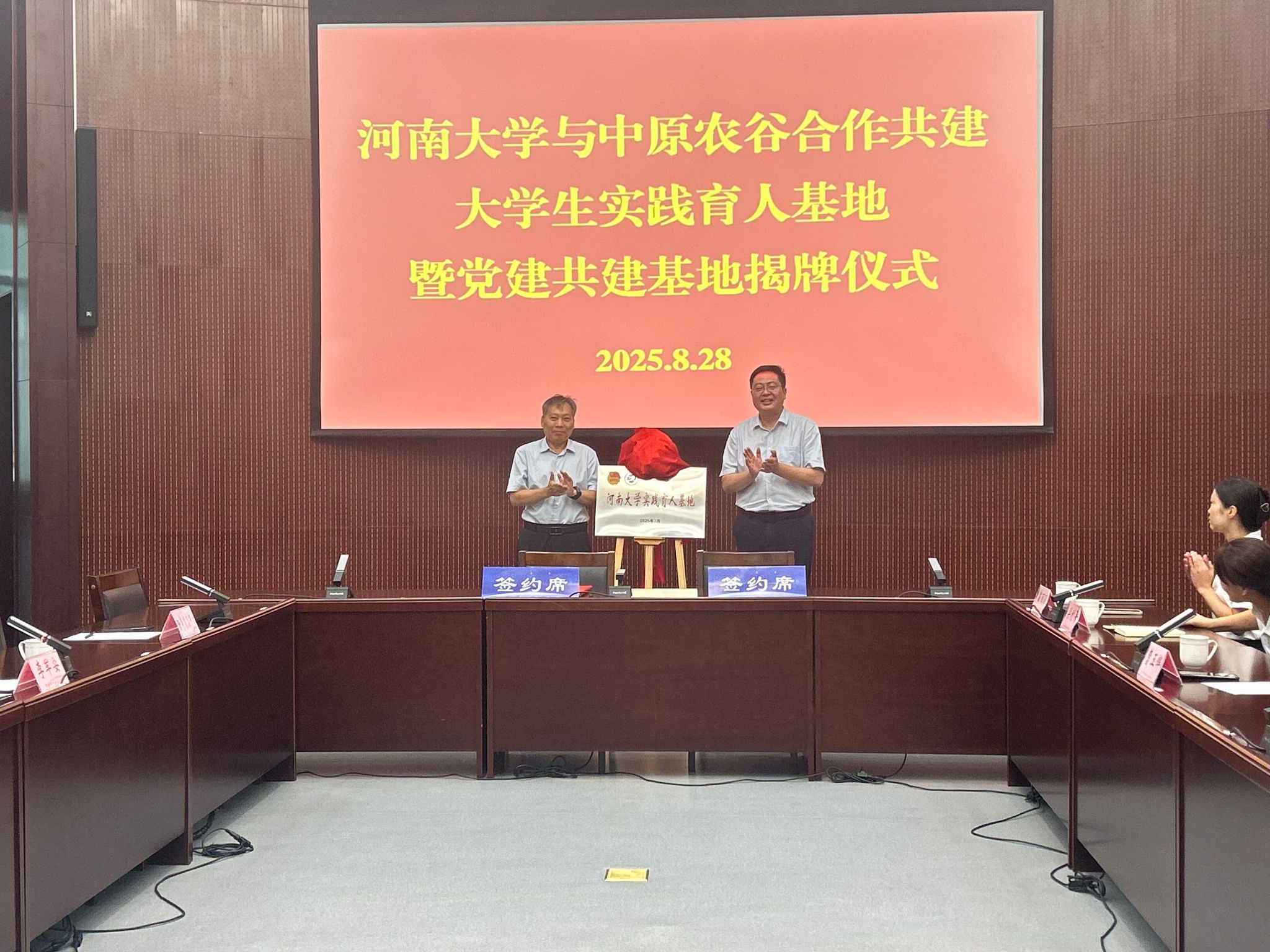8月28日,河南大学与中原农谷合作共建大学生实践育人暨党建共建基地揭牌仪式在平原示范区举行。中原农谷管委会领导杨海峰、李军安,校团委书记龚森、农学院党委书记王磊以及示范区组织人事局、农高中心、祝楼乡相关负责人与农学院师生代表共同见证这一重要时刻。