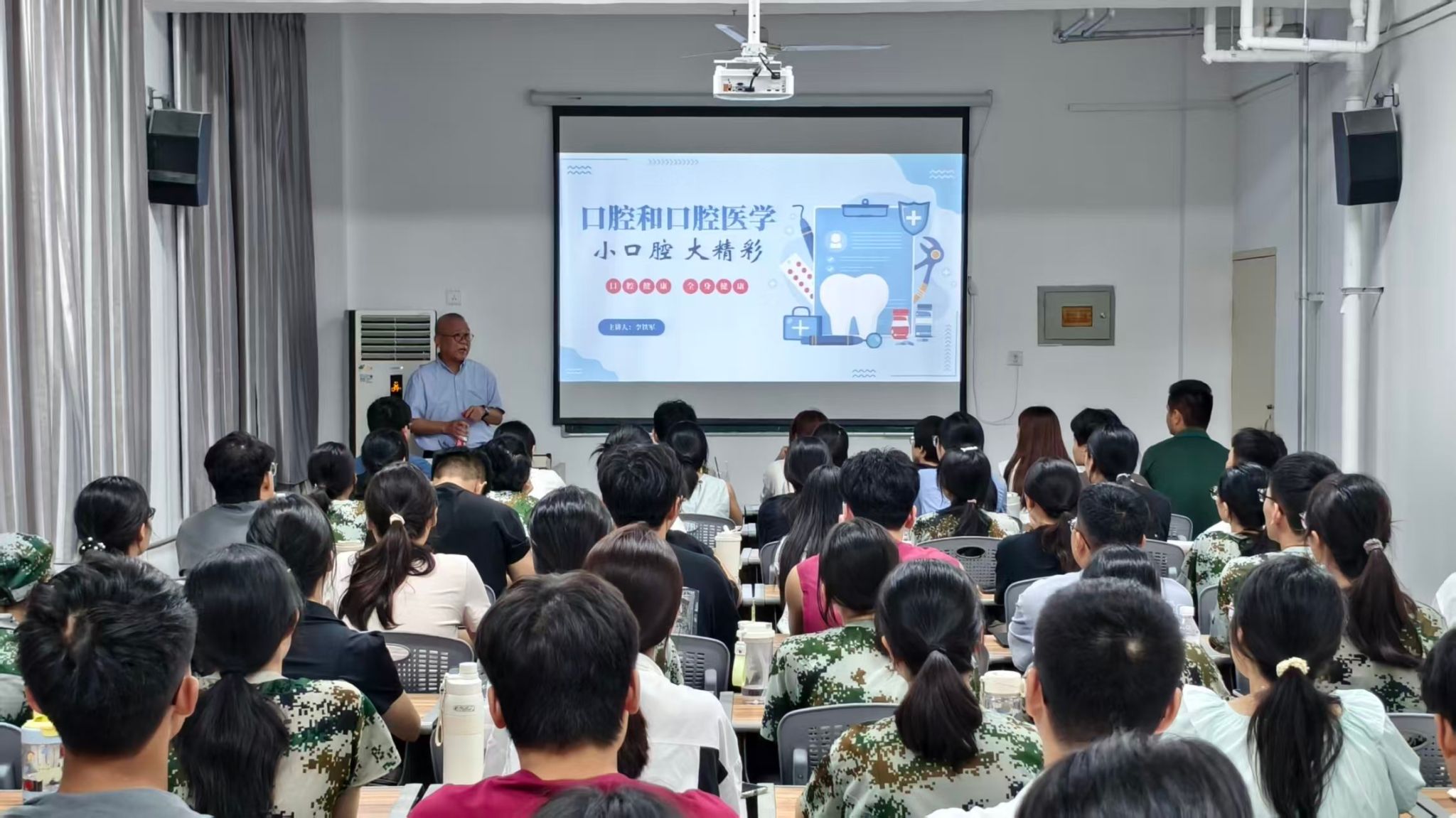 9月1日晚的《小口腔,大精彩》开学第一课上,李铁军教授通过数字化诊疗案例为新生打开医学之门。当3D打印种植体精准重建颌骨的画面跃然屏上,现场响起此起彼伏的惊叹。李教授以“预防为主”的职业准则贯穿讲授,特别通过龋齿风险预测系统的演示,生动诠释了早期干预的临床价值。课后有新生在心得中深情写道:“原来方寸之间的牙齿守护,承载的是守护人民健康的千钧重诺。”