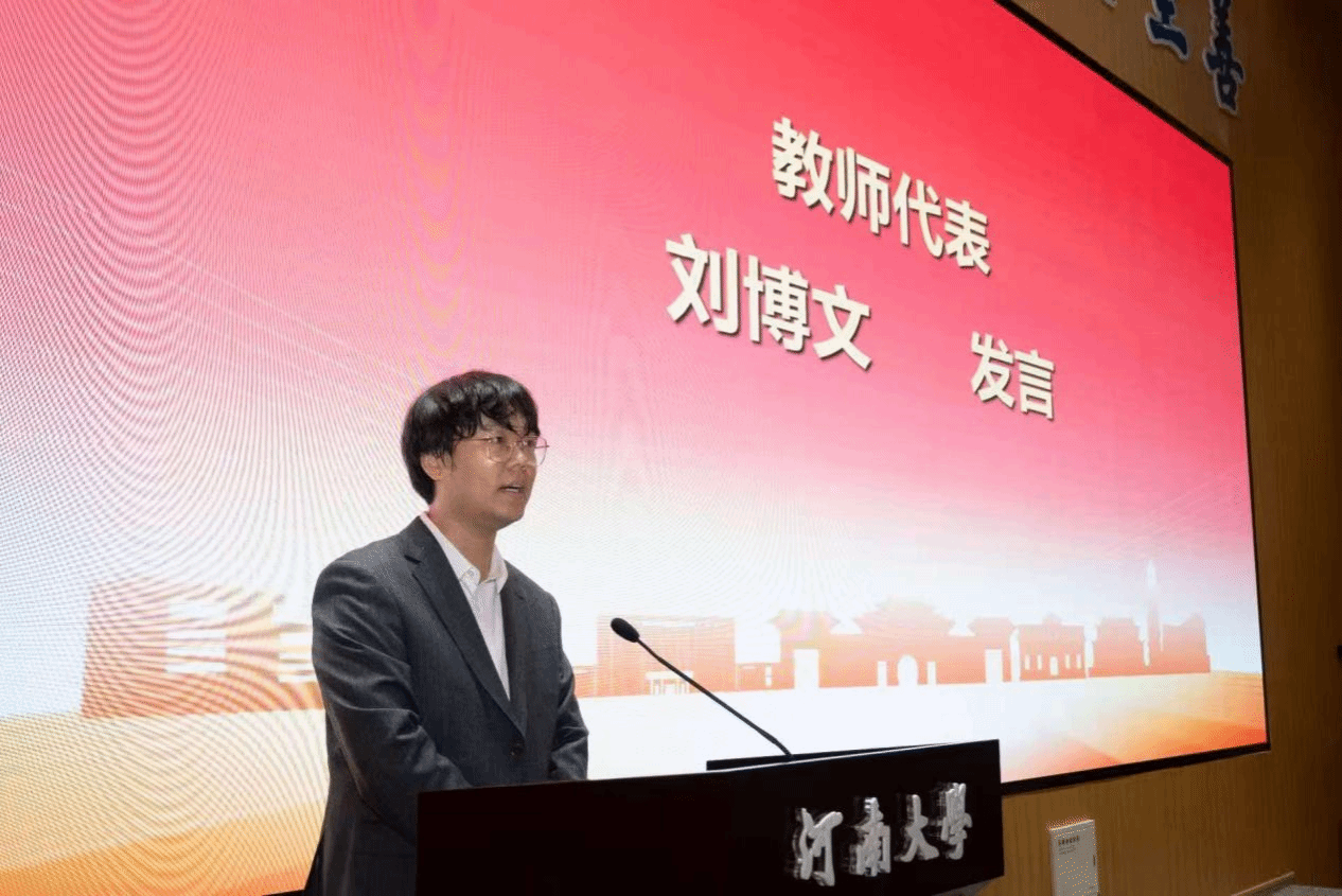 国家博士后创新人才支持计划入选者、河南省青年人才托举工程入选者刘博文作为教师代表发言,对同学们顺利考入“双一流”高校表示祝贺,并对同学们提出了殷切希望,一是愿同学们格物致知,在分子变幻中悟万物之理;二是愿同学们博学日新,既要勤勉钻研,也要勇于尝试;三是坚韧不拔,用四年时光,在化学的殿堂里书写属于自己的灿烂篇章。