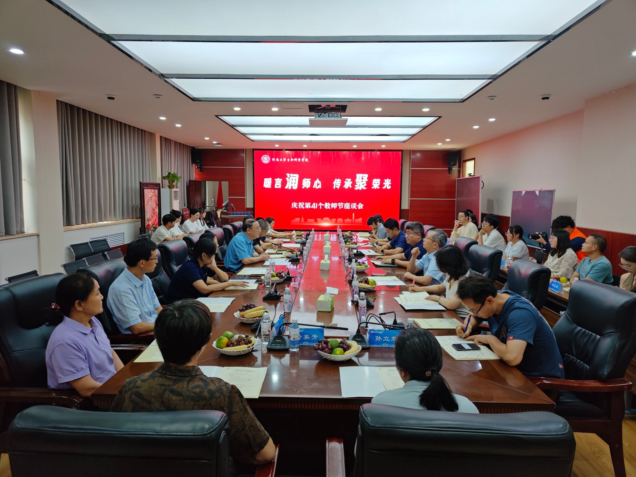 在我国第41个教师节来临之际,9月9日下午,生命科学学院在B201会议室举办“暖言润师心,传承聚荣光”教师节座谈会,从教满三十年以上教师、2025年新入职教师、学院及重点实验室领导班子成员、各系室主任参加座谈会,会议由学院党委副书记宋永鹏主持。