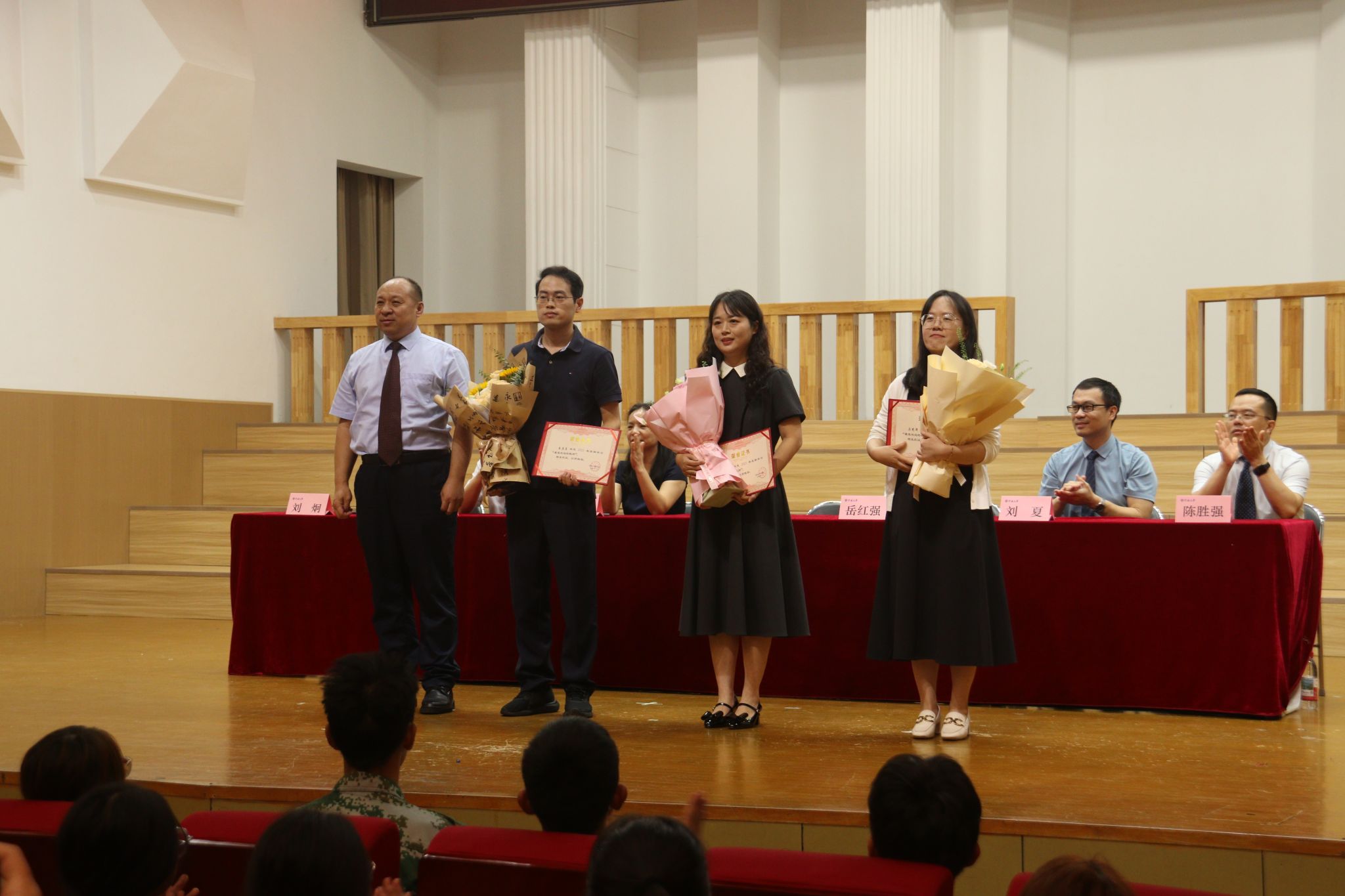 在典礼现场,学院举行了2025年“最受欢迎教师”表彰仪式。院党委书记祝晓路为马光泽、陈阳、朱真真三位教师颁发荣誉证书,掌声与鲜花交织成最真挚的敬意。学院师生共同庆祝第41个教师节,共绘法学院高质量发展新篇。
