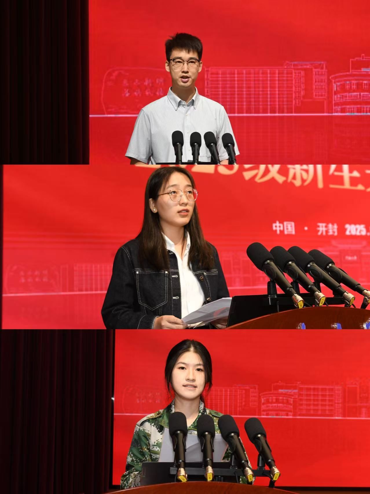 在校生代表、2024级物理学专业研究生司鹏丽分享感悟,叮嘱新生保持开放包容心态,在协作中收获友谊,在校园活动中丰富成长体验。