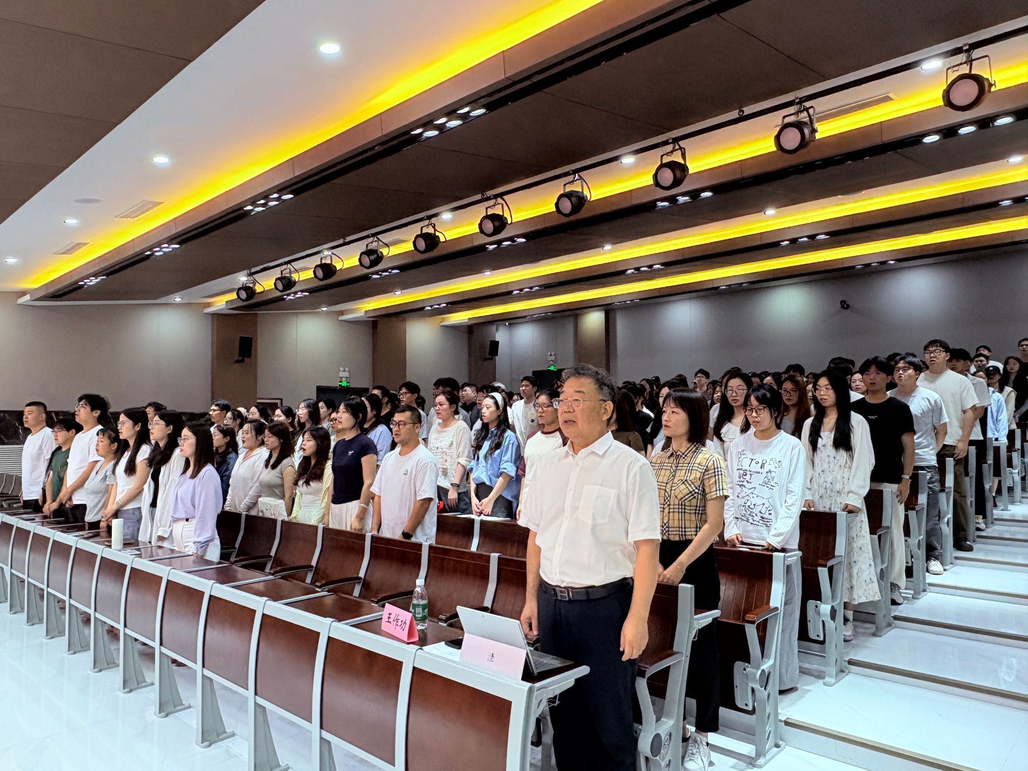 典礼最后,全体师生齐声高唱校歌,开学典礼在激昂悠扬的旋律中落幕。研究生开学典礼的举办为新生的研究生生涯提供了一个充满意义的起点,为学生未来的学术研究指明了方向,对于增强新生的归属感以及集体责任感具有重要意义,相信2025级研究生新生必将以饱满的热情和坚定的信念,在经济学院书写青春华章,共创美好未来!
