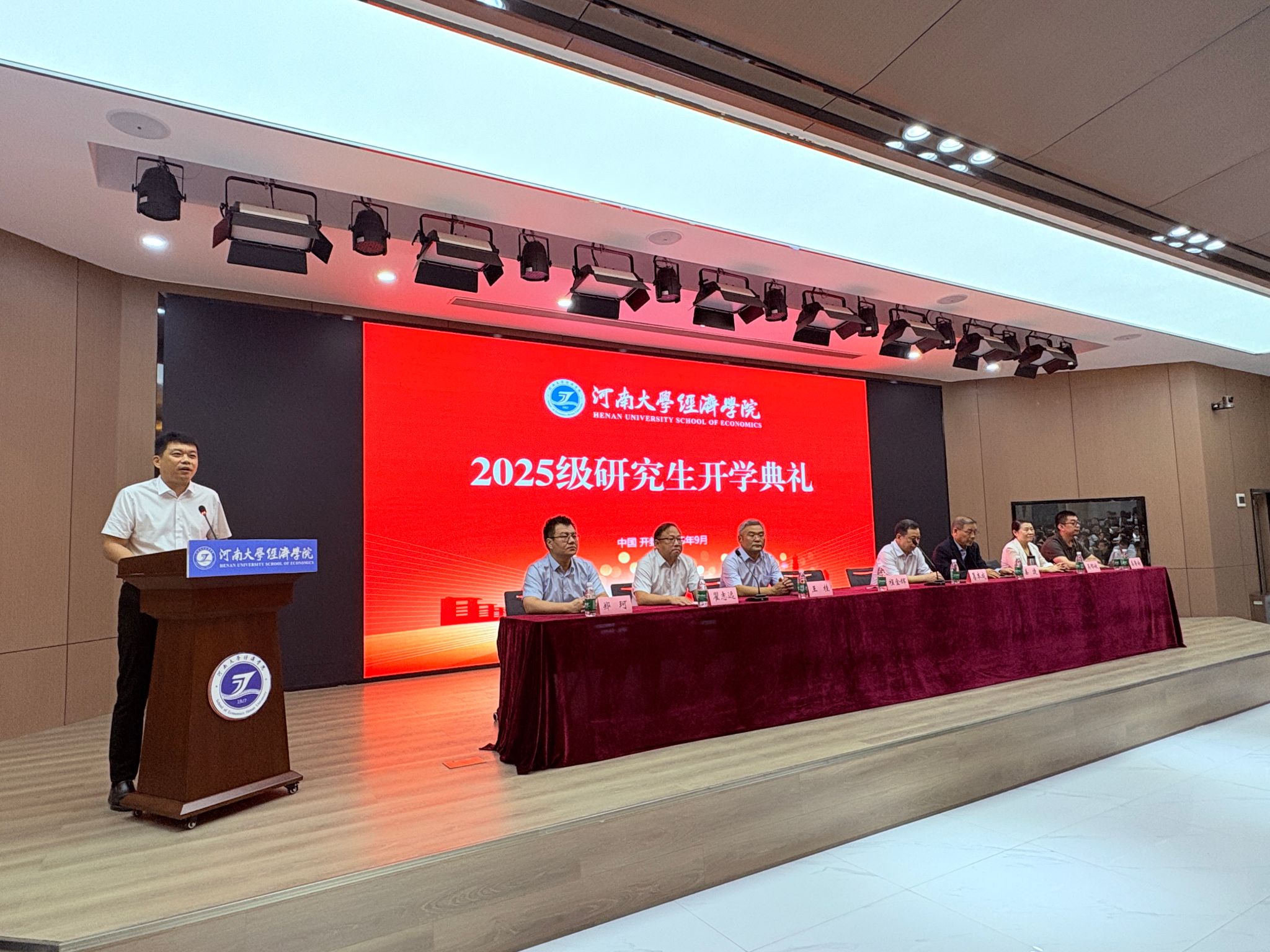 金秋送爽,丹桂飘香。9月14日上午,经济学院2025级研究生开学典礼在金明校区马克思主义学院多功能报告厅举行。经济学院全体党政领导班子成员、组织员、2025级研究生辅导员、导师代表、老生代表以及2025级全体研究生参加典礼。开学典礼由学院党委副书记翟志远主持。