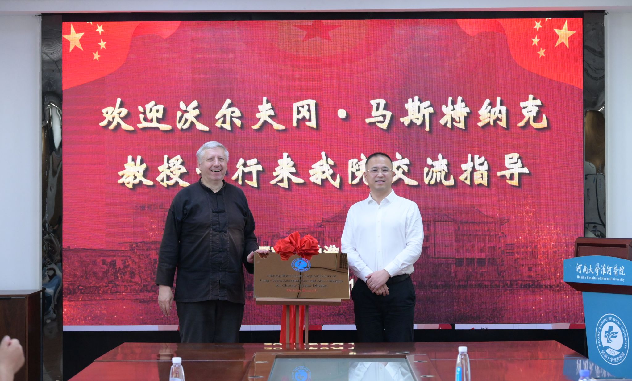随后,左克强与马斯特纳克教授共同为“中国(西太平洋地区)慢性心脏疾病长期康复与艺术治疗中心—河南分中心”揭牌。