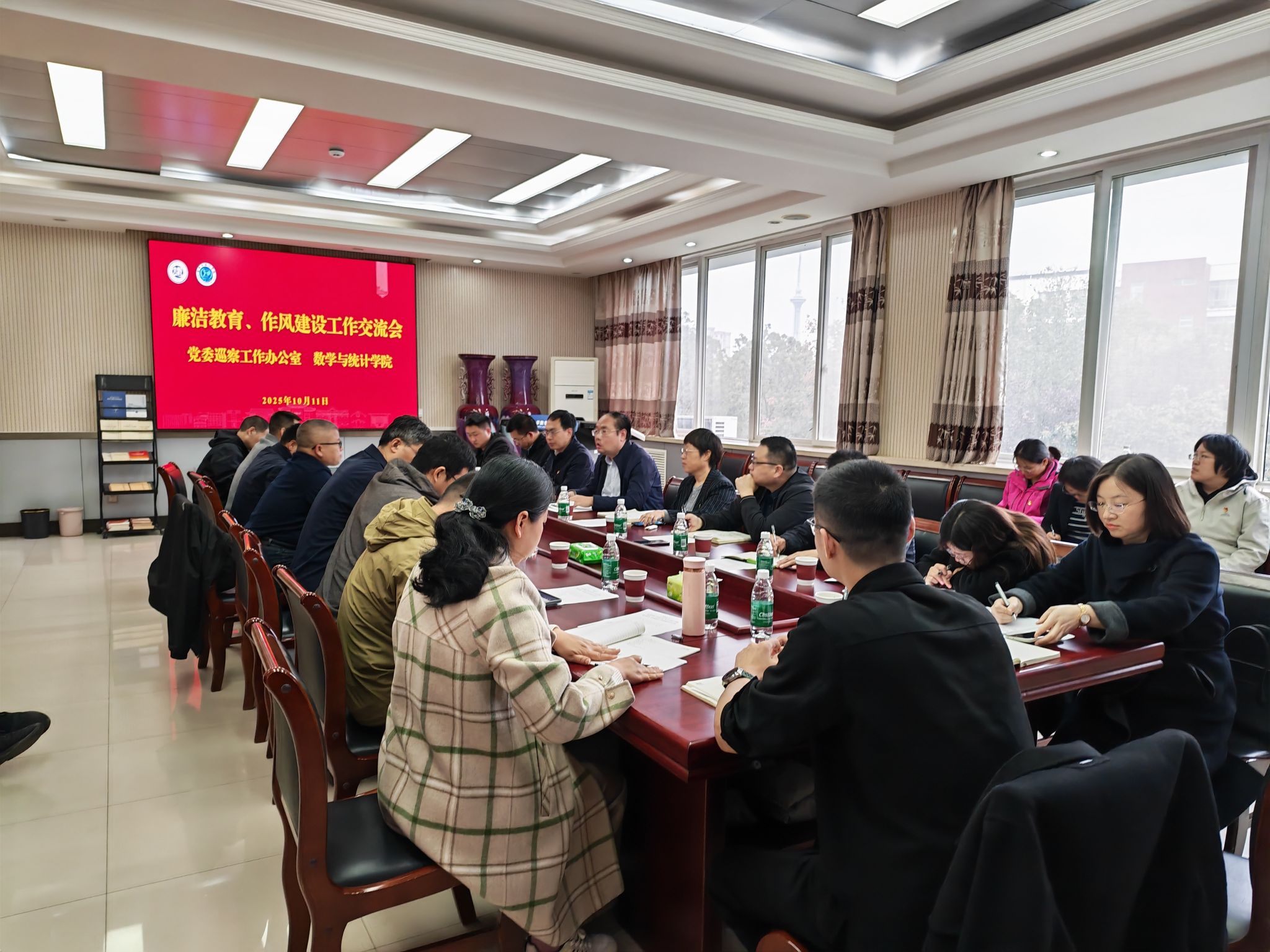 10月11日下午,巡察办党支部与数学与统计学院党委在数学与统计学院二楼党建活动室联合开展专题党日活动,围绕廉洁教育与作风建设召开工作交流会。巡察办党支部全体在校成员,学院党委委员及部分党支部书记、系室负责人参加活动。活动由学院党委书记曹志伟主持。