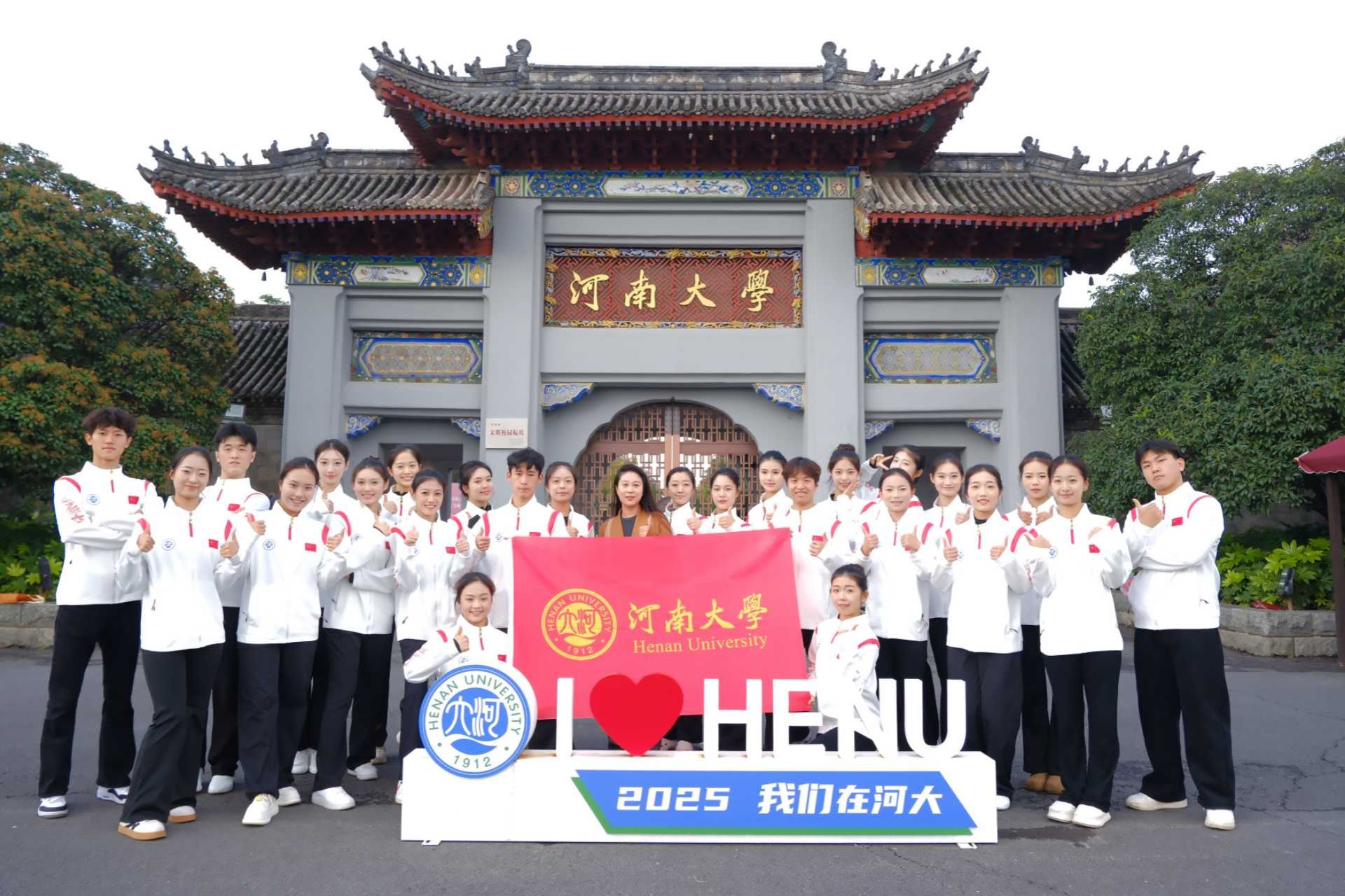 比赛现场,规定套路组严守《锦绣大中华》竞赛标准,手臂角度、步伐间距皆精准把控。自选套路组深挖多元民族文化,维族的旋转、藏族的舒展、傣族的柔刚与鼓子秧歌的酣畅在编排中共生,配合默契、创意迭出,展现出河大学子对专业水平的极致追求以及对民族文化魅力的精彩诠释。两组队伍的表现获得了现场评委的高度认可。