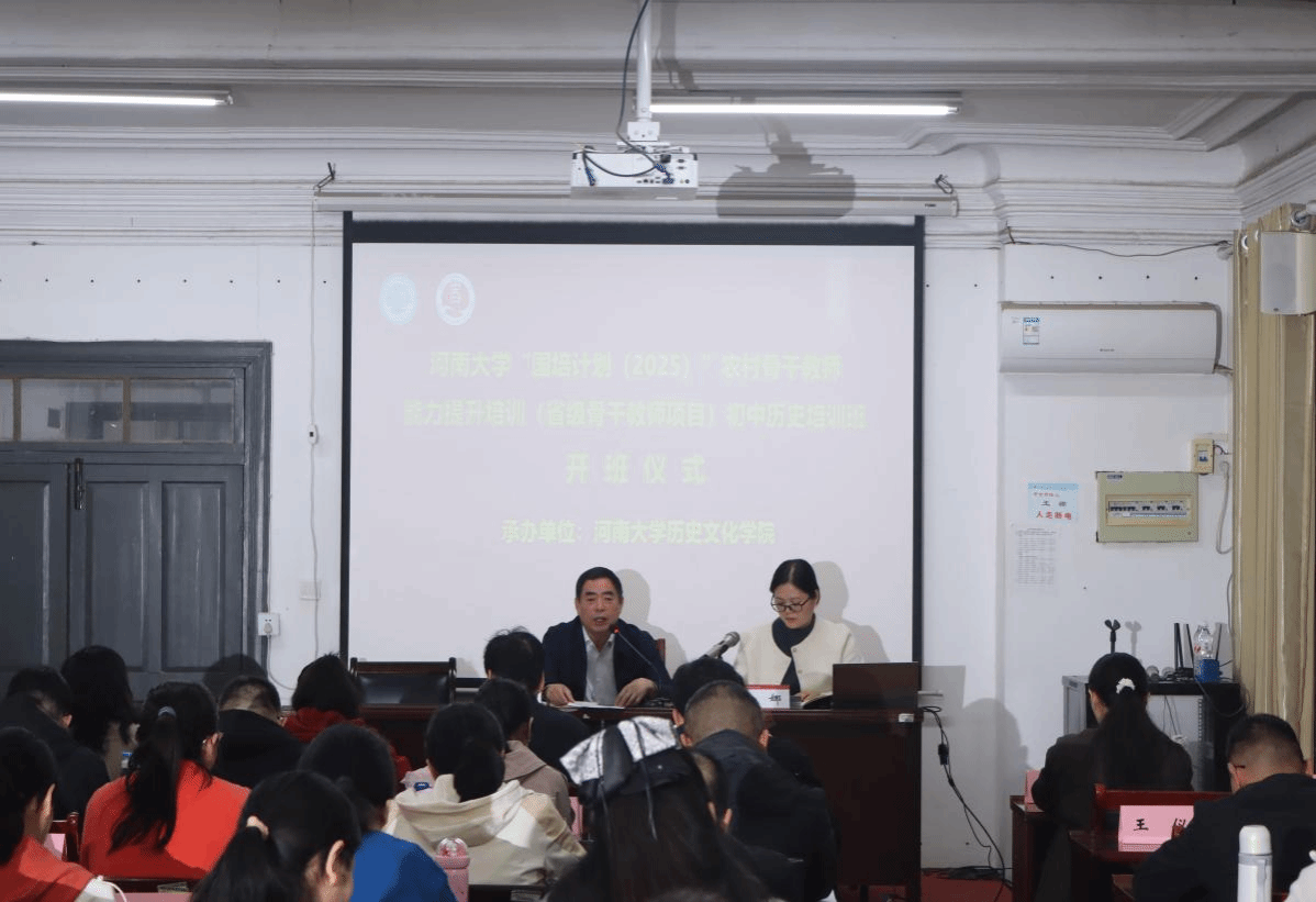 10月14日上午,河南大学“国培计划(2025)”农村骨干教师能力提升培训(省级骨干教师项目)初中历史培训班开班仪式在历史文化学院111教室举行。学院党委书记张占党出席仪式并致辞,开班仪式由班级负责人王娜主持。