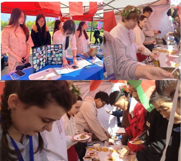 在国际美食展区,白俄罗斯学生精心准备了地道的民族美食。香气扑鼻的马查卡厚煎饼、外酥里嫩的土豆巴布卡、金黄可口的土豆饼,吸引了众多师生驻足品尝,成为展区最受欢迎的亮点之一。