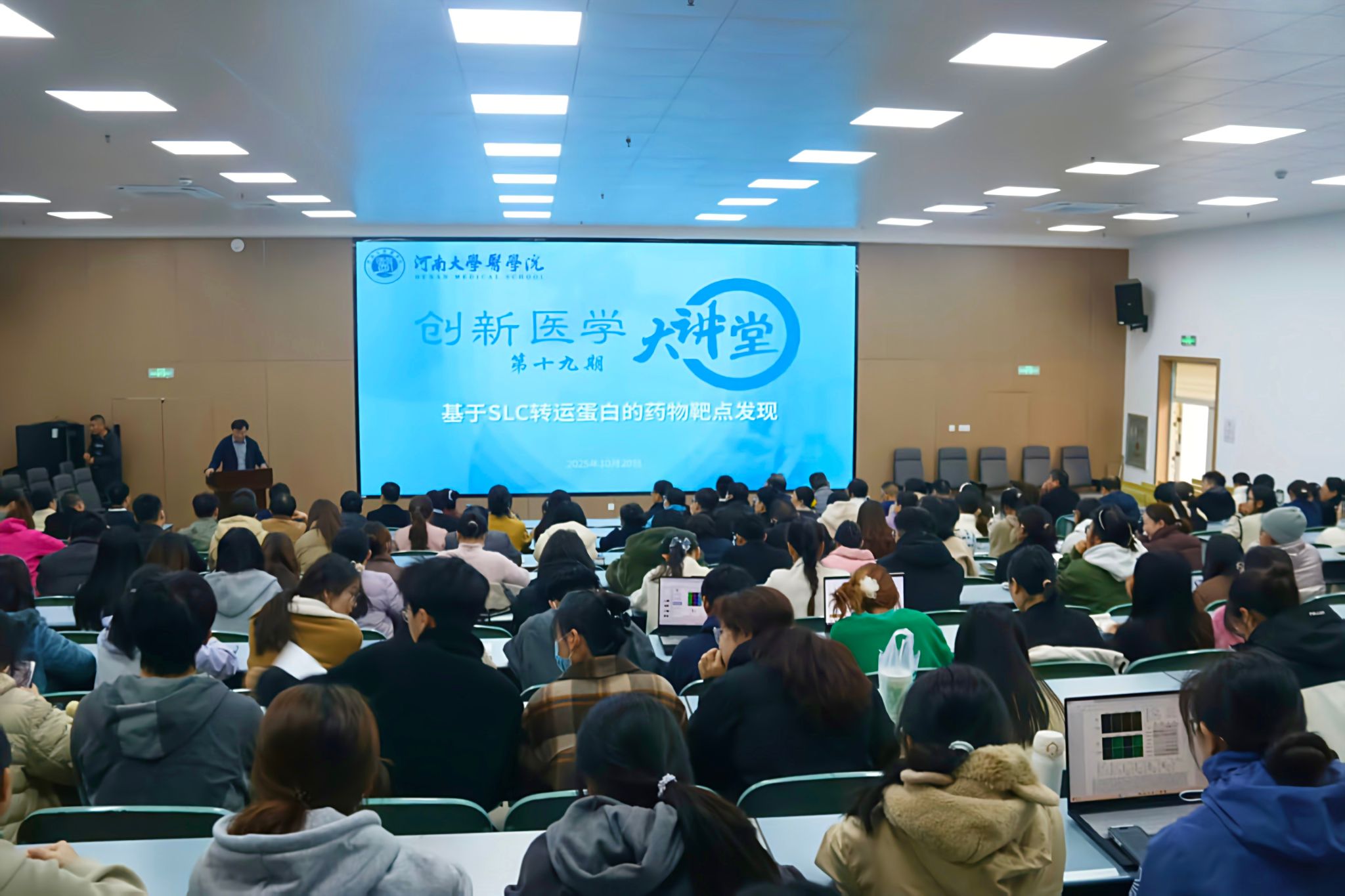 10月20日下午,河南大学创新医学大讲堂第19期在药学院二楼报告厅举行。本次讲堂特邀请清华大学药学院副院长陈立功教授作《基于SLC转运蛋白的药物靶点发现》的报告。医学院及所属学院、医院、科研机构分管教学、科研副院长;教学、科研办公室负责人;药学学科带头人及相关博士;教师、学生代表等近300人参加会议。讲堂由医学院人才引育工作组组长、第一临床医学院(第一附属医院)副院长吕心瑞主持。