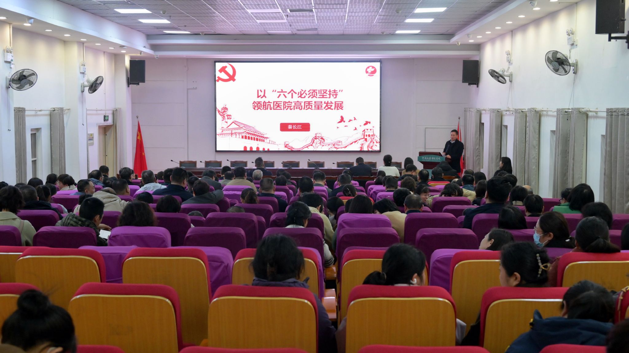 秦长江围绕习近平新时代中国特色社会主义思想中的“六个必须坚持”,系统阐释了其理论内涵与实践路径,并结合医院实际,对推进“十五五”期间高质量发展提出明确要求。他表示,“六个必须坚持”是党的二十大报告提出的推进理论创新的科学方法,是新时代指导各项事业发展的根本遵循,并强调只有准确把握“必须坚持人民至上、必须坚持自信自立、必须坚持守正创新、必须坚持问题导向、必须坚持系统观念、必须坚持胸怀天下”这一立场观点方法,才能更好地领会习近平新时代中国特色社会主义思想的精髓要义,进而才能在思想认识上站得高、在分析问题上看得深、在工作推进中把得准。